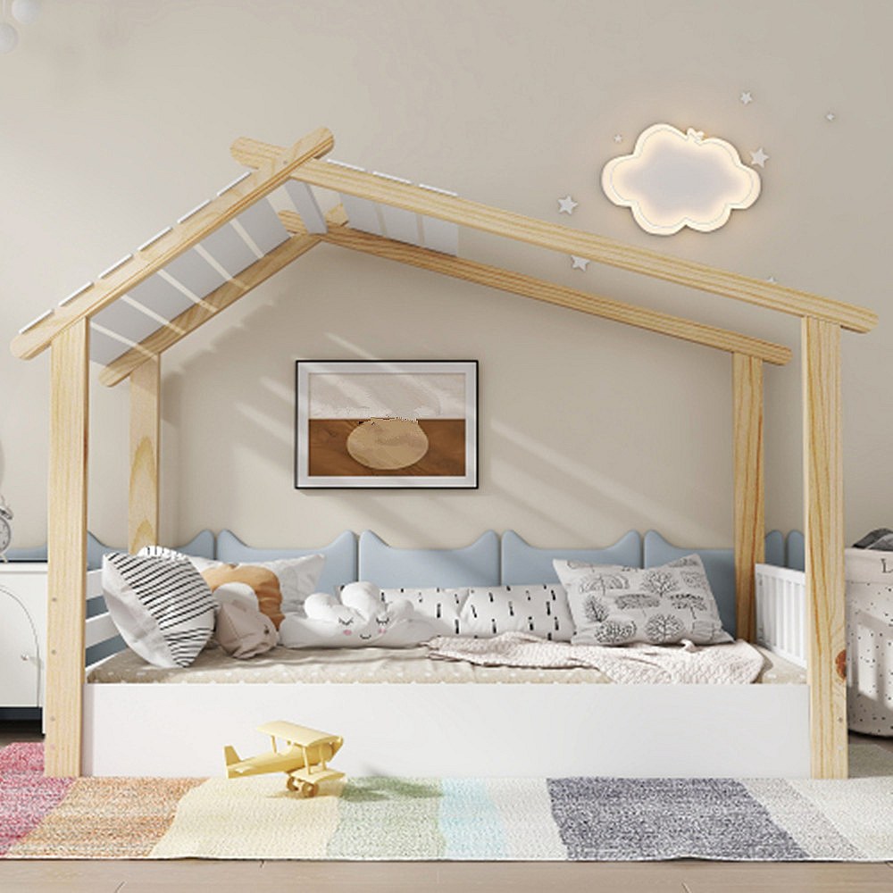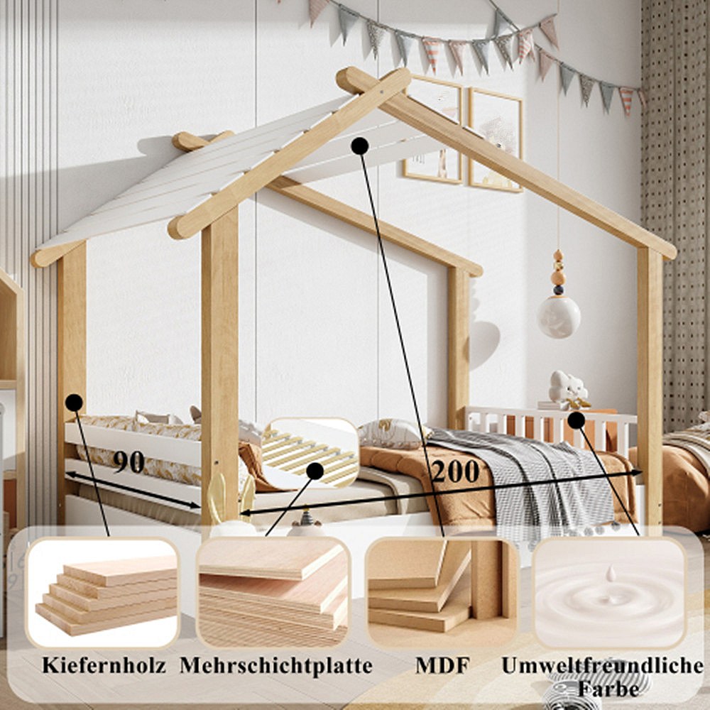 Holzbetten, Kinderbett, Einzelbett, Exquisites Holzhausdesign, Stabile Lattenroste, 90x200cm
