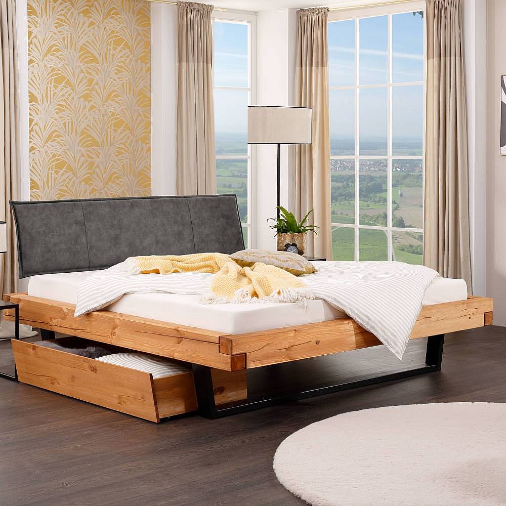 Holzbettgestell Bettrahmen in Eichefarben aus Massivholz