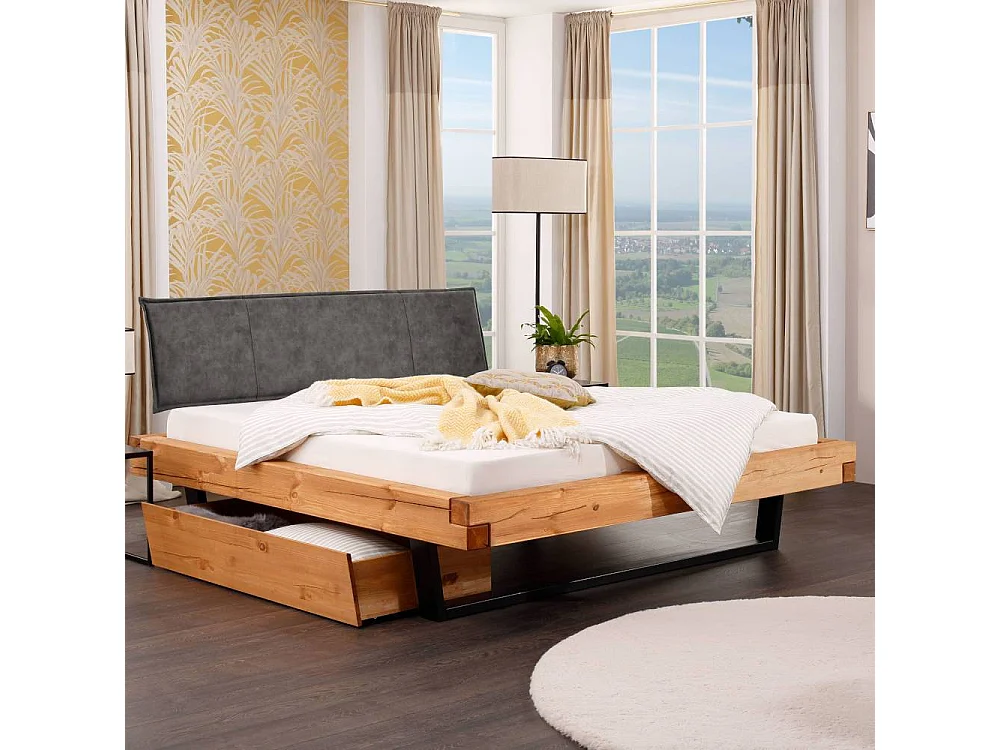 Holzbettgestell Bettrahmen in Eichefarben aus Massivholz