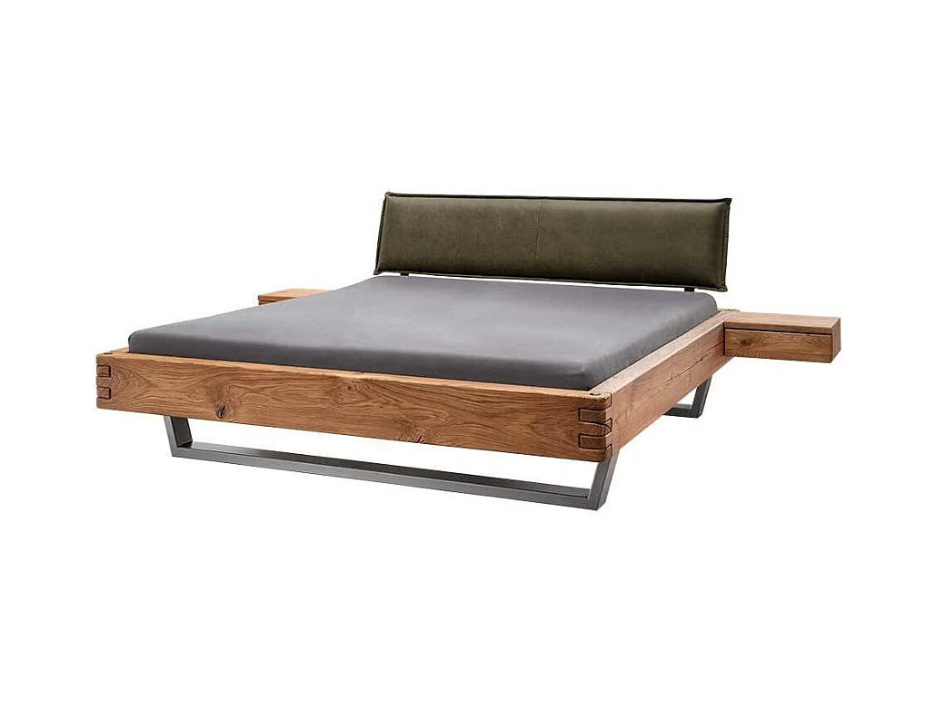 Holzbettgestell Doppelbett in Wildeichefarben und Oliv Grün