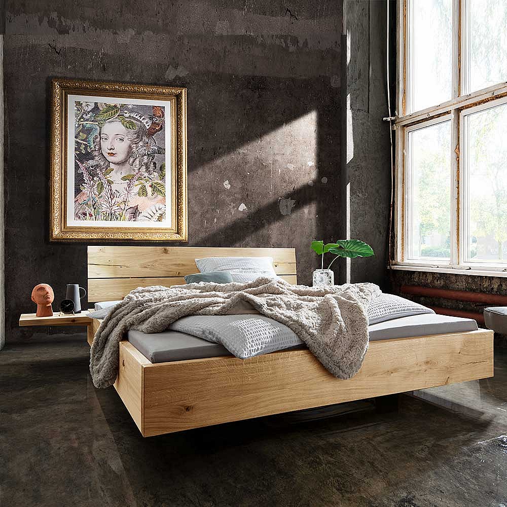 Holzbettgestell im Industry und Loft Stil zwei Nachtkommoden (dreiteilig)