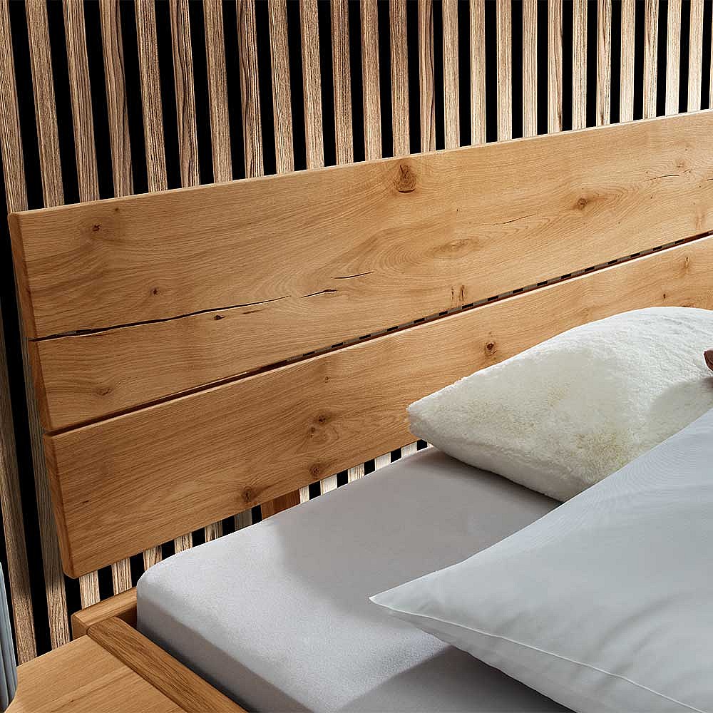 Holzbettgestell im Industry und Loft Stil zwei Nachtkommoden (dreiteilig)