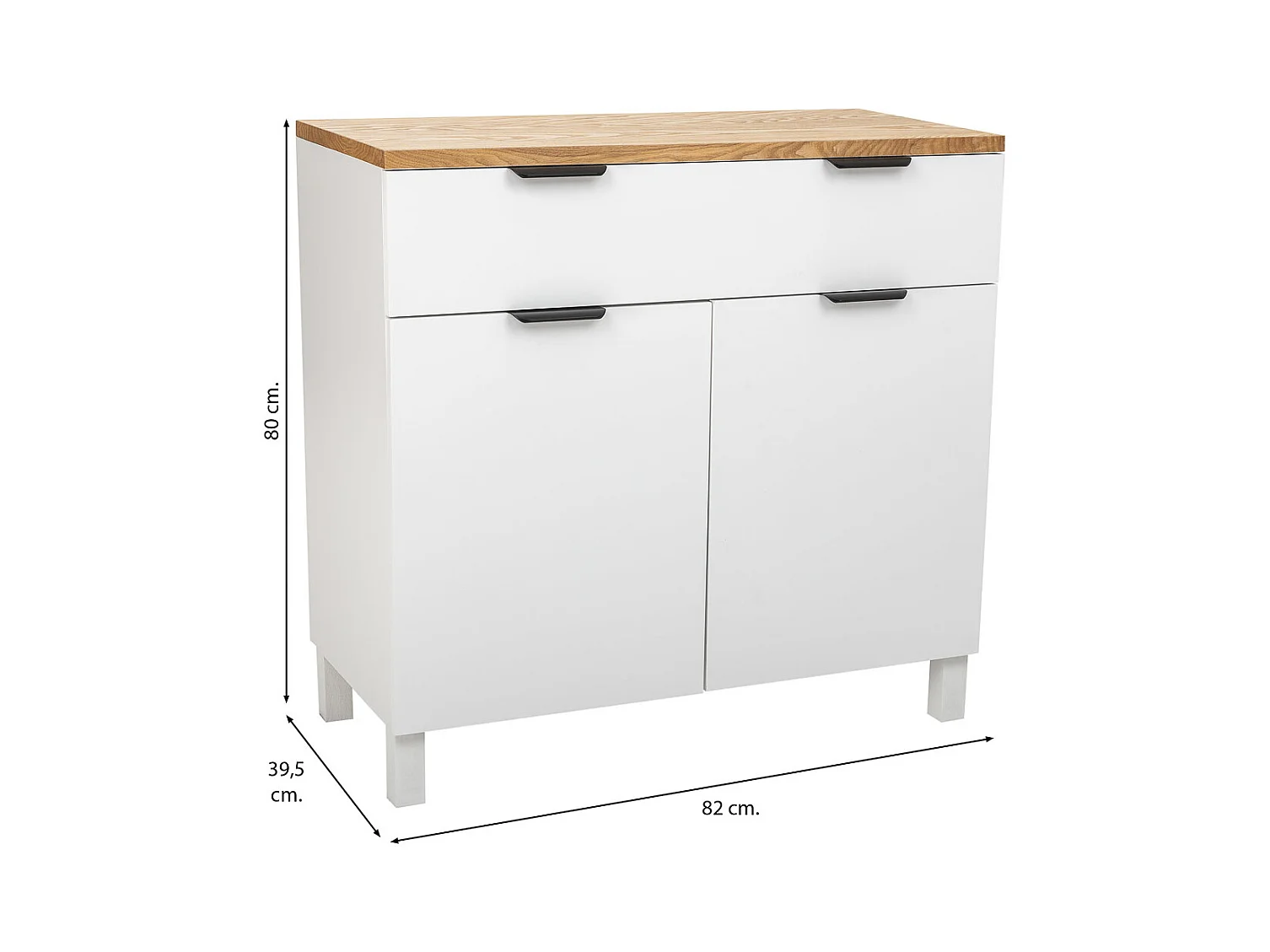 Holzkonsole mit 2 Schubladen und 2 Türen, 82x39,5x80, weiß
