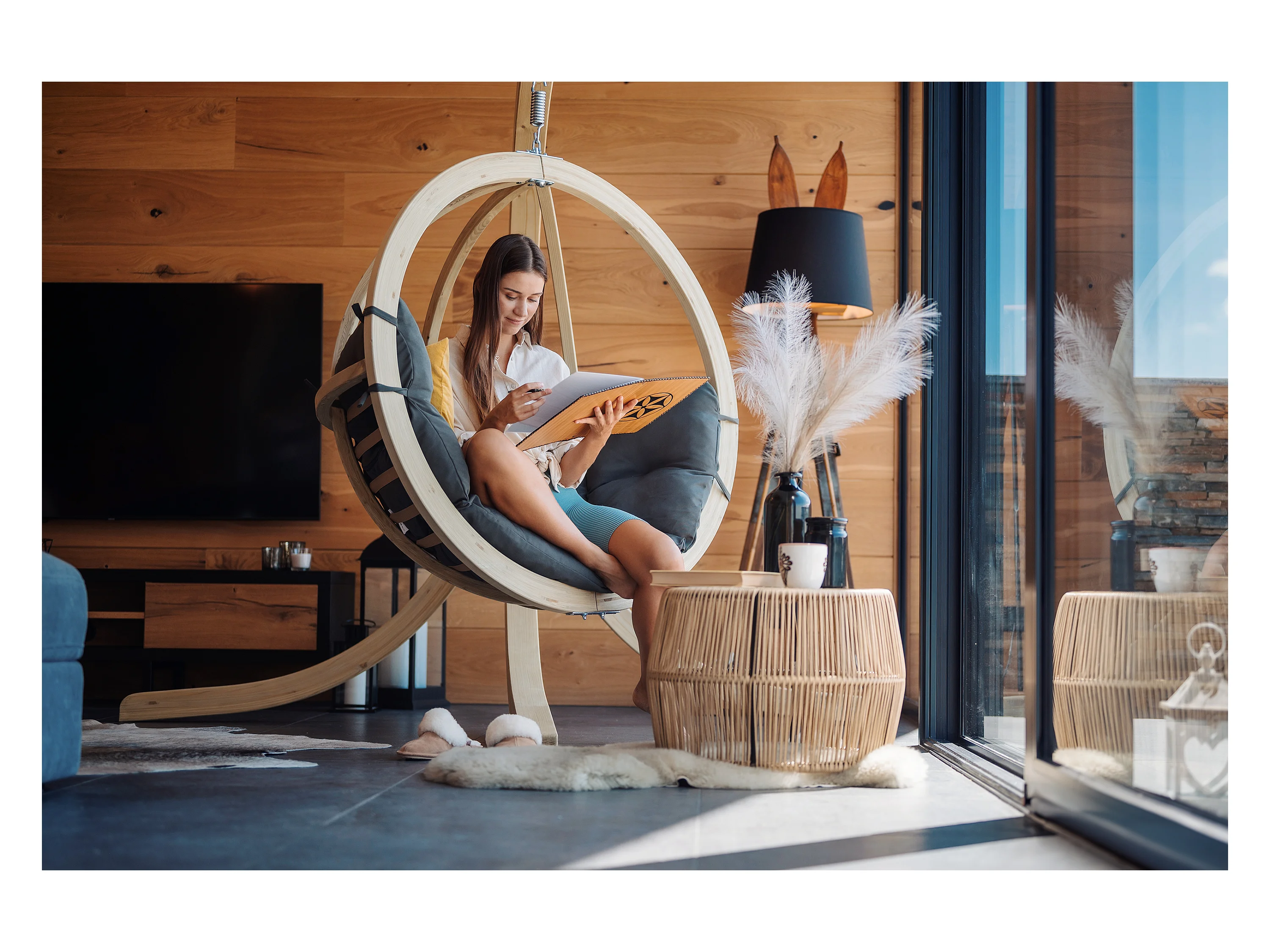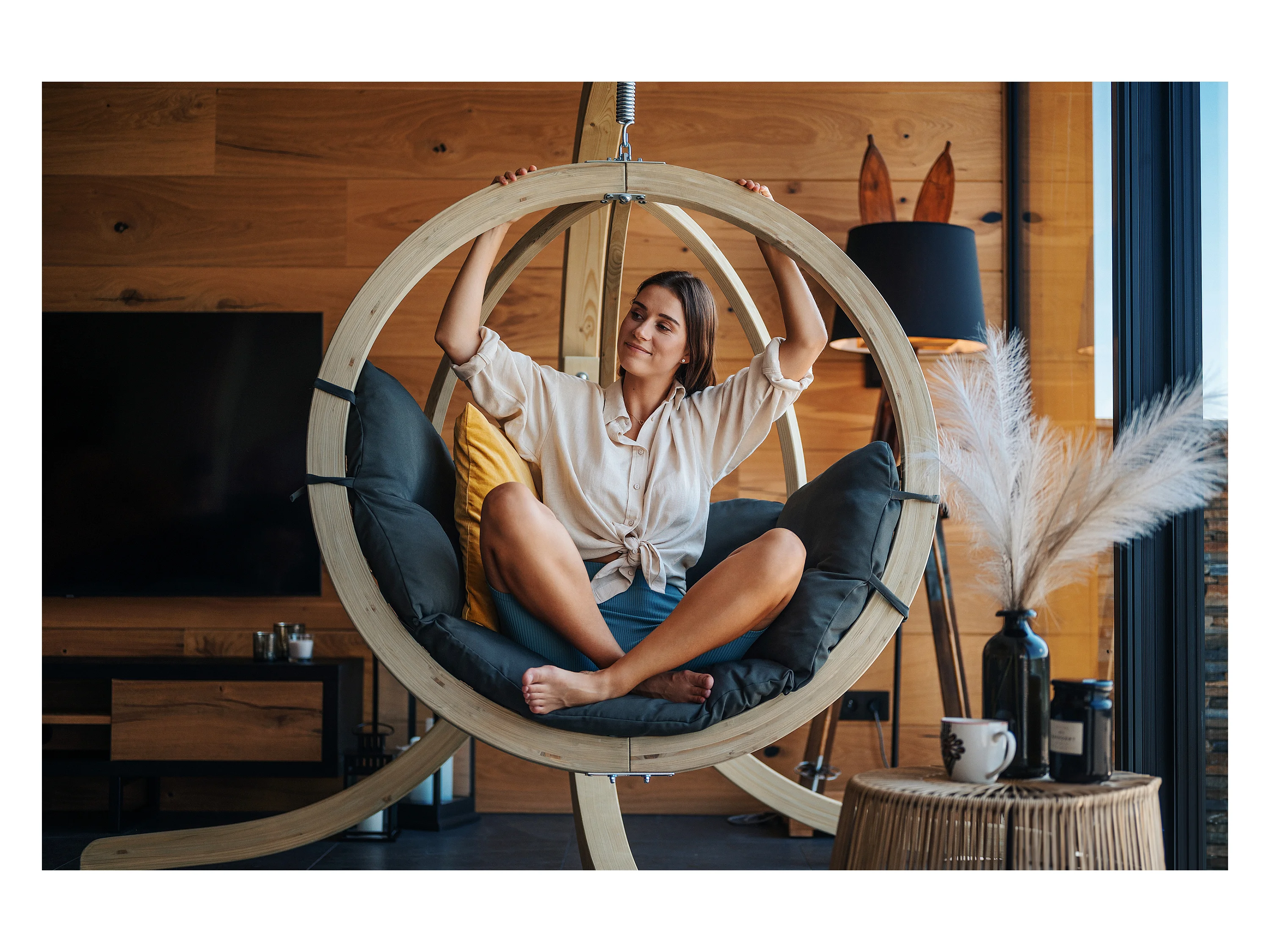 Hölzerner Hängesessel mit Gestell - dunkelgrau - HIGLO