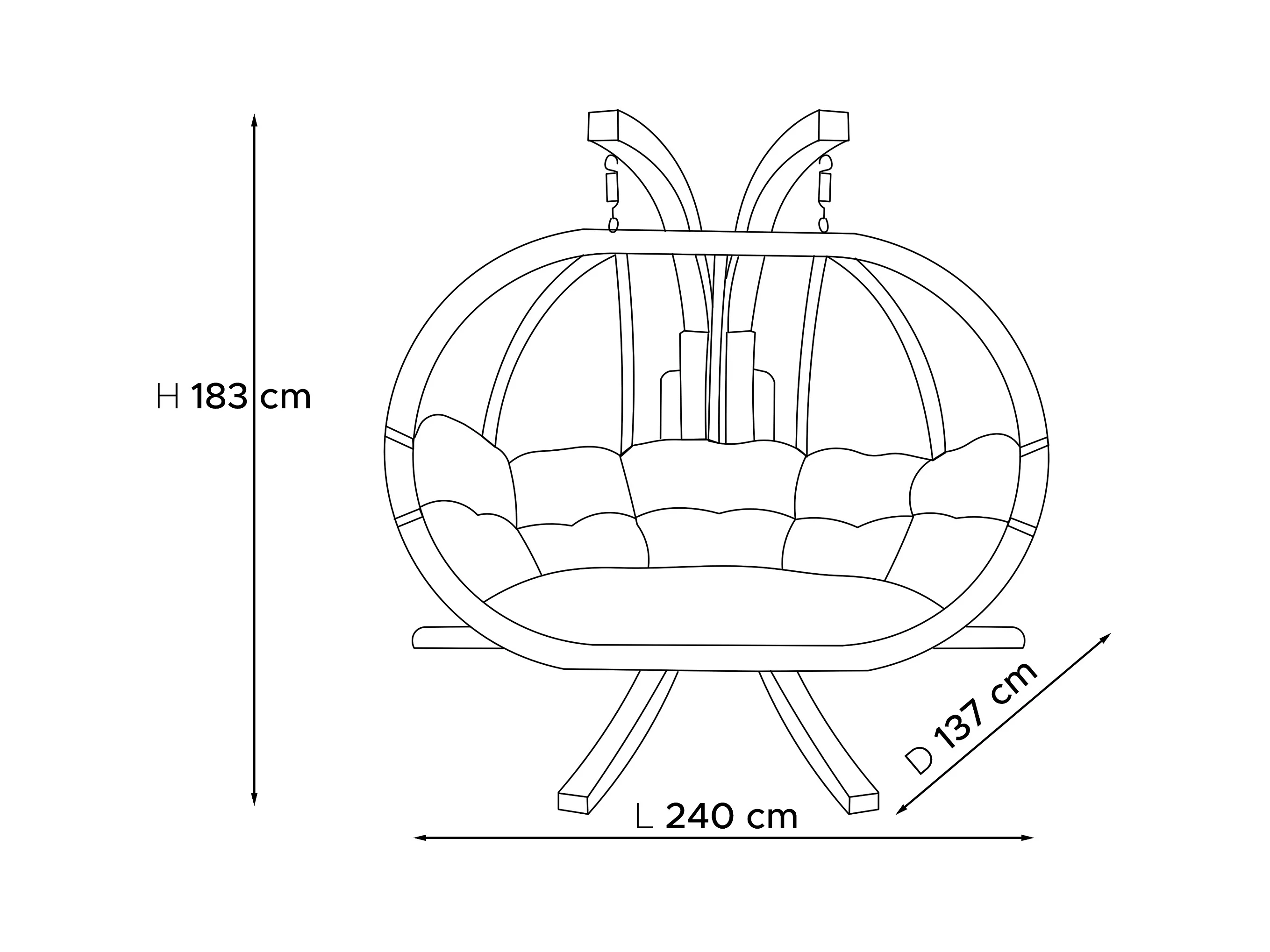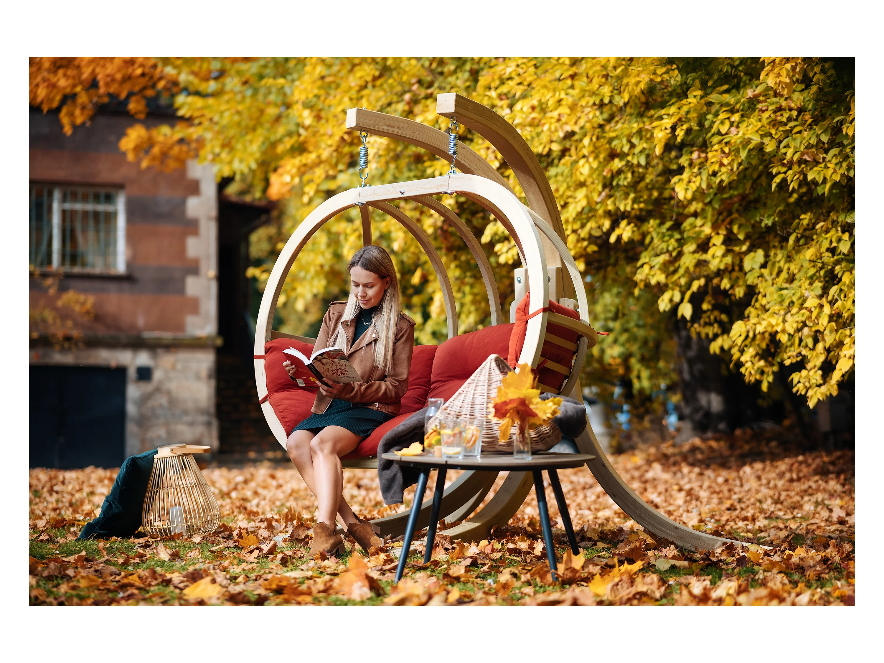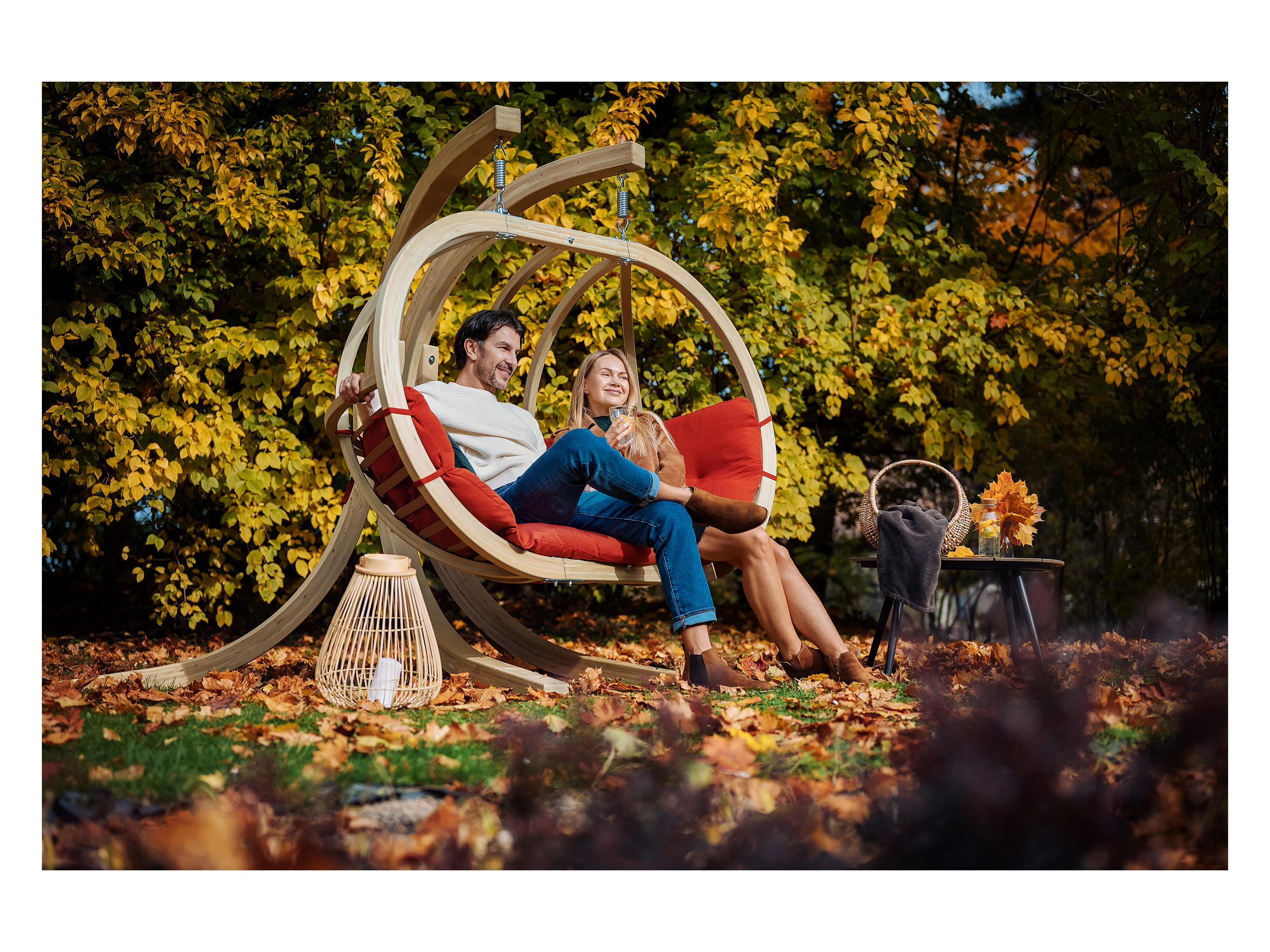 Hölzerner Hängesessel mit Gestell für zwei Personen - rot - CALLISTO