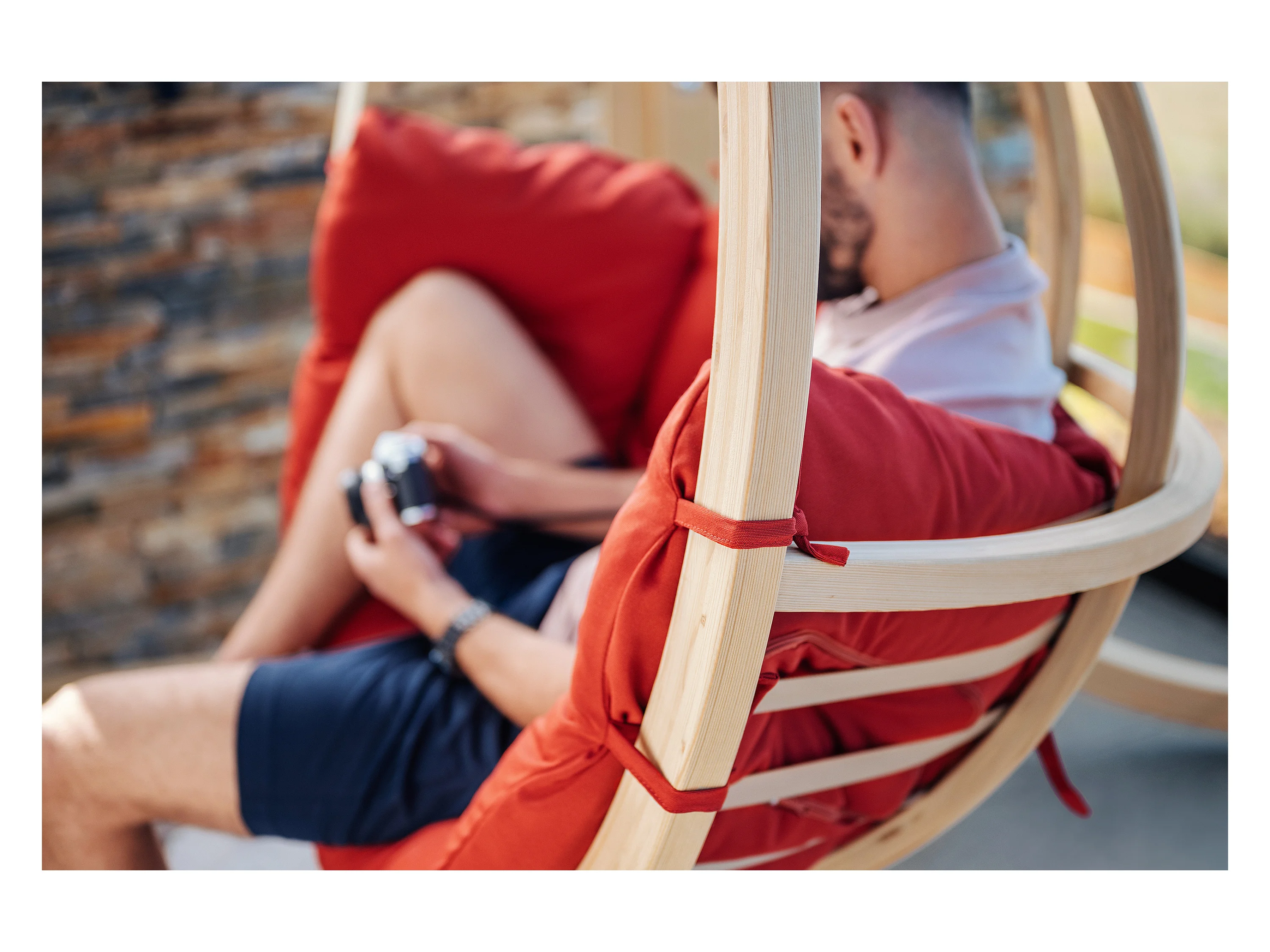 Hölzerner Hängesessel mit Gestell - rot - HIGLO