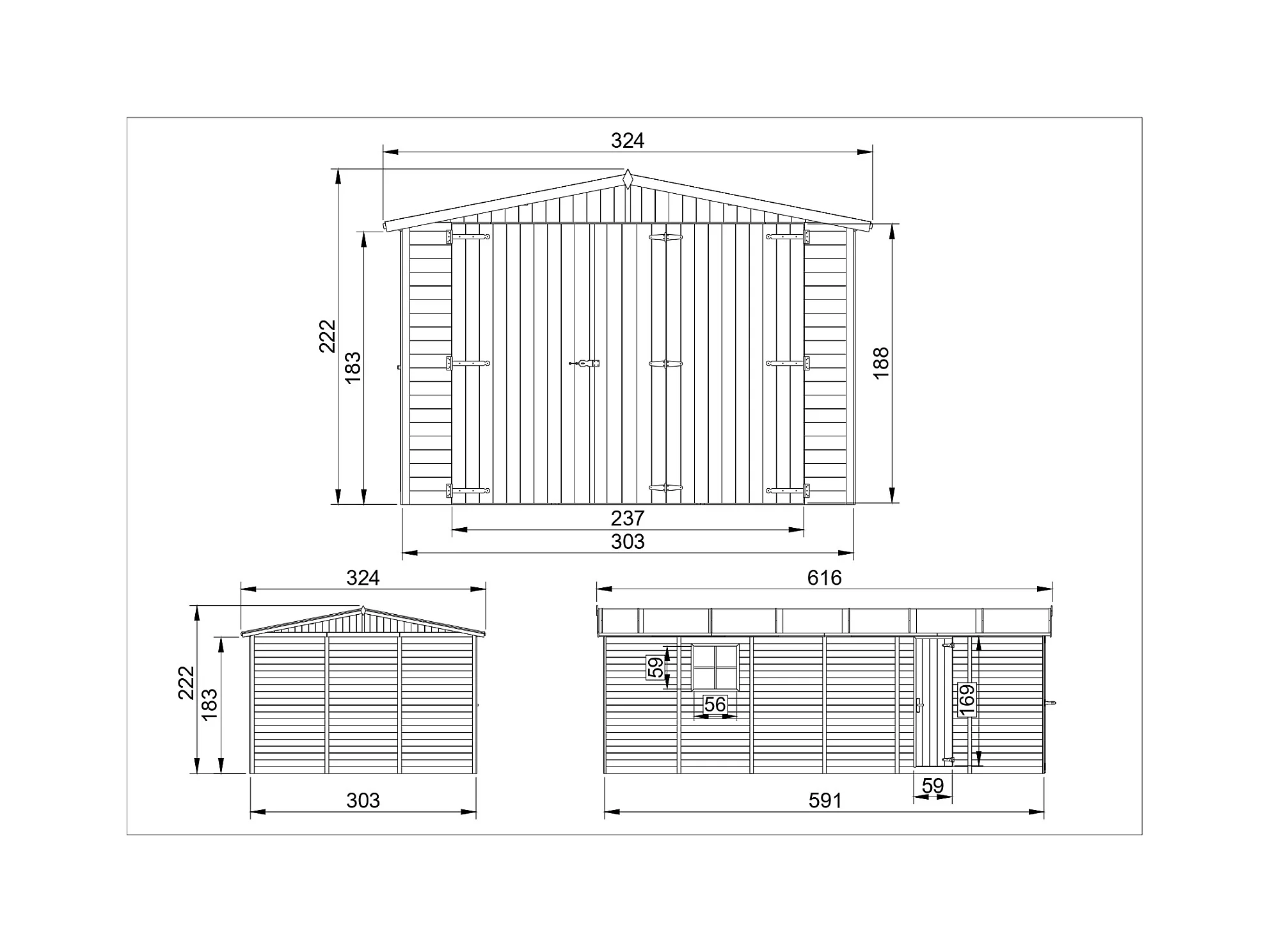 Holzgarage - Abstellraum mit Fenstern- H222x616x324 cm /18 m2 - TIMBELA M102
