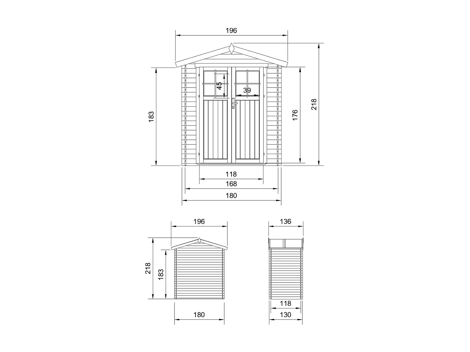 Holzhaus gartenhaus mit boden imprägnierte - B196xL136xH218 cm / 1.98 m² - M367F+M367G