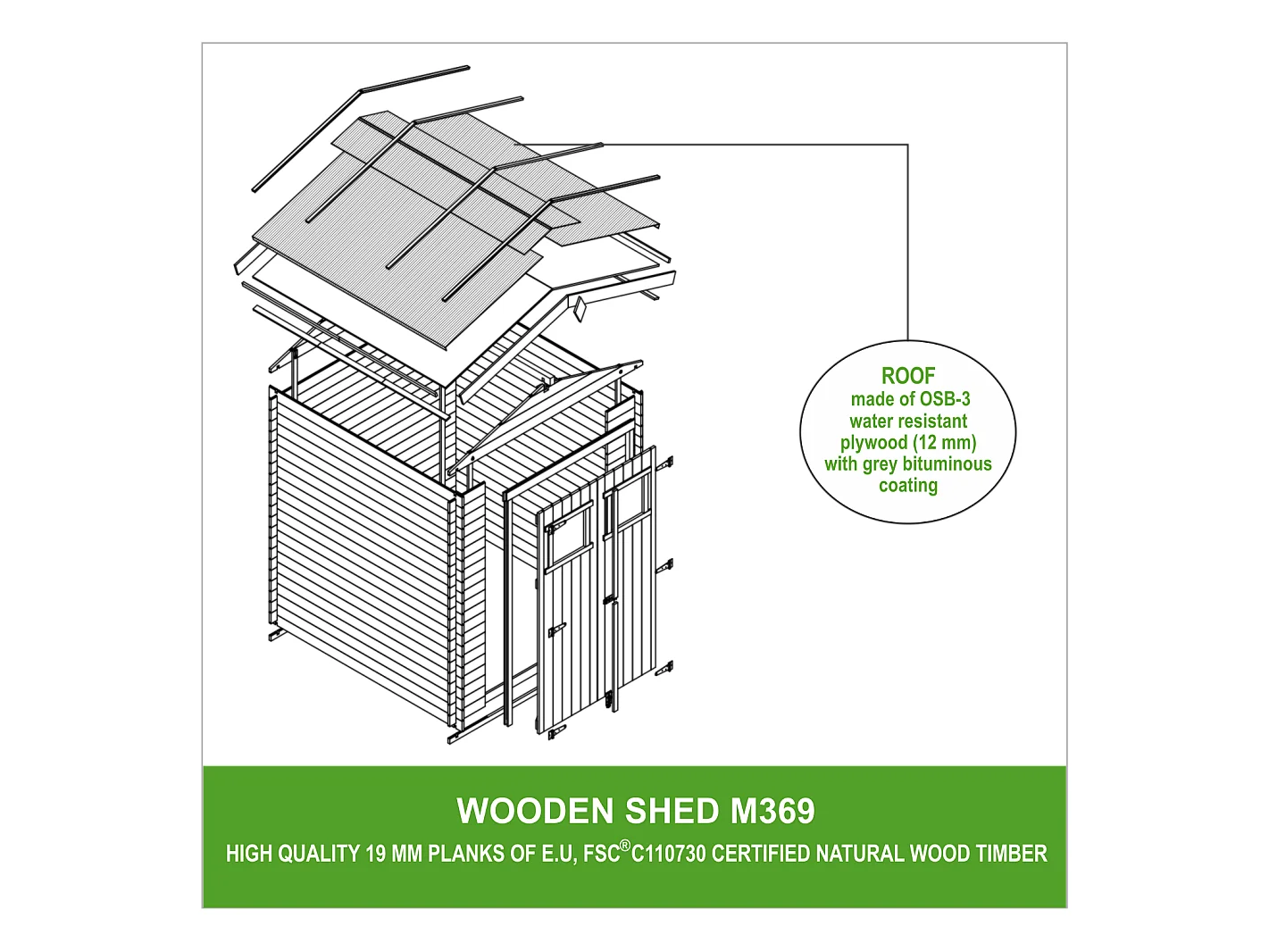 Holzhaus Gartenhaus TIMBELA M369 - B236xL226xH218 cm/ 4.33 m2