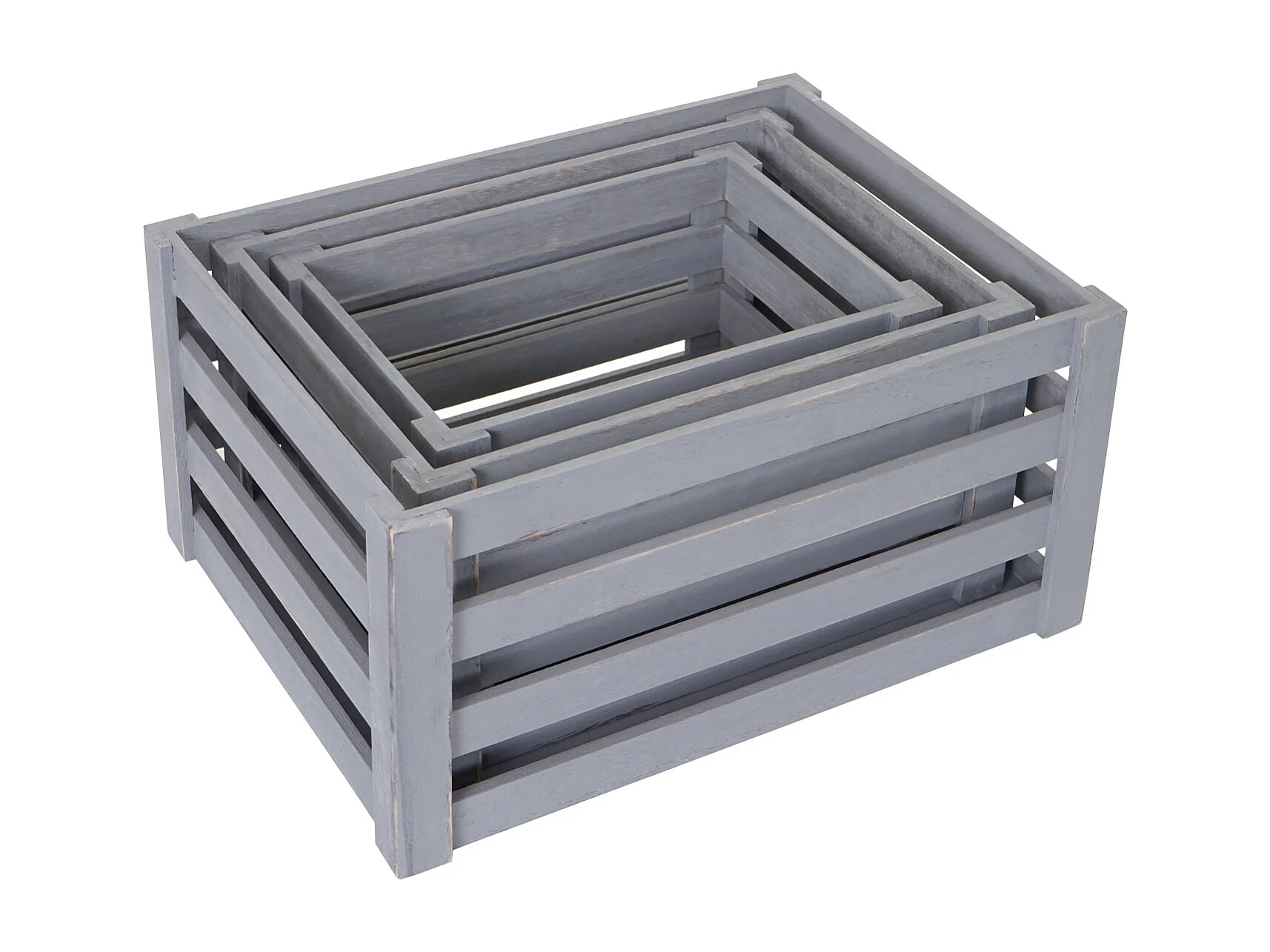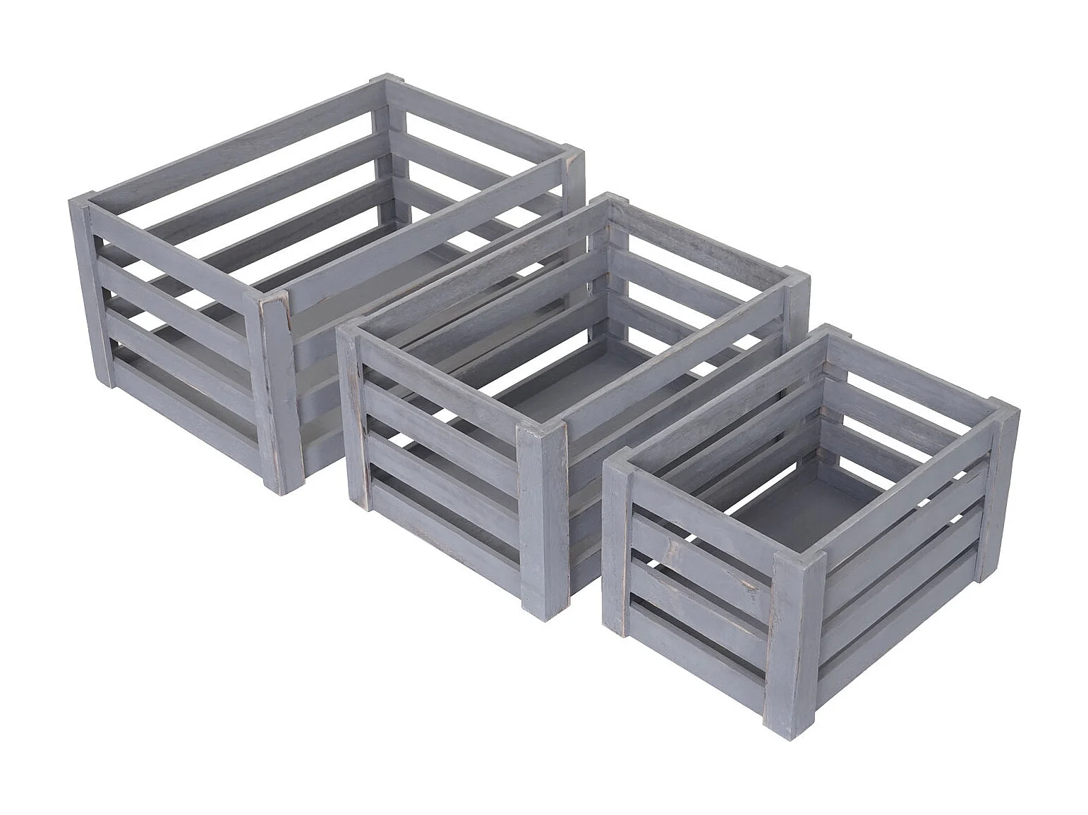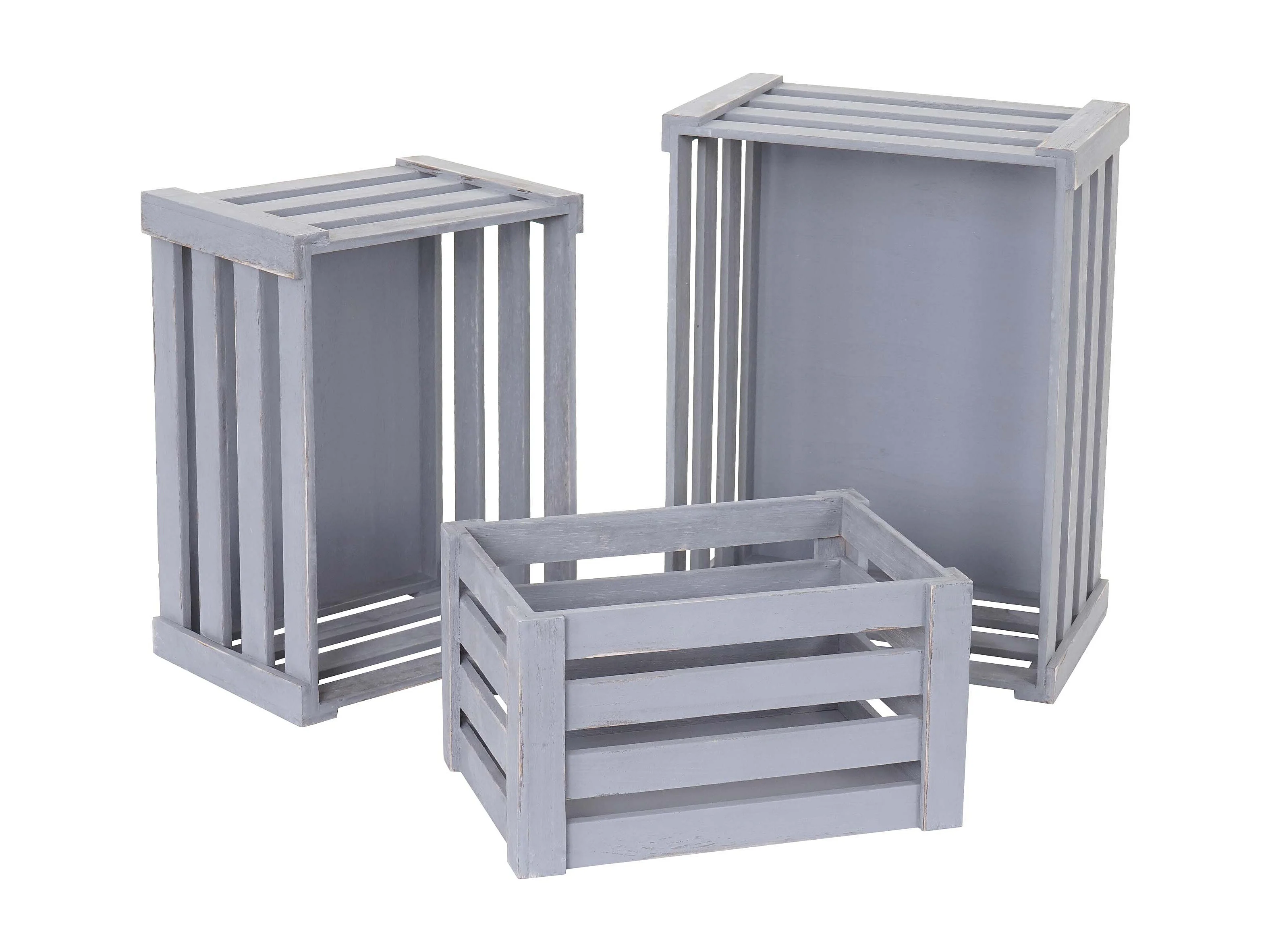 Holzkiste MCW-C56 (3er-Set), Grau, shabby