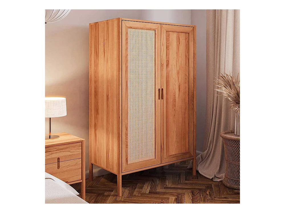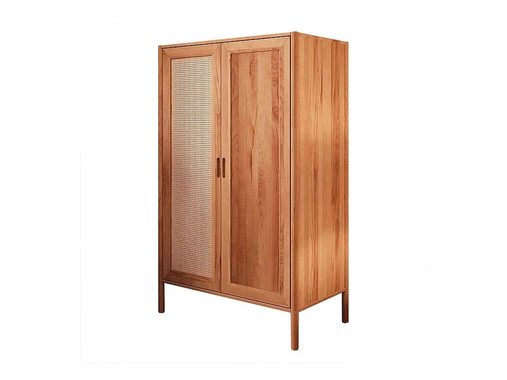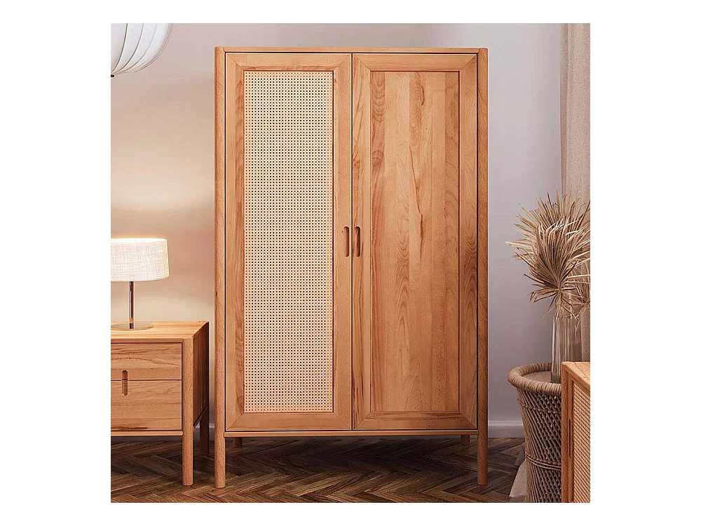 Holzkleiderschrank aus Wildbuche Massivholz Rattangeflecht Tür
