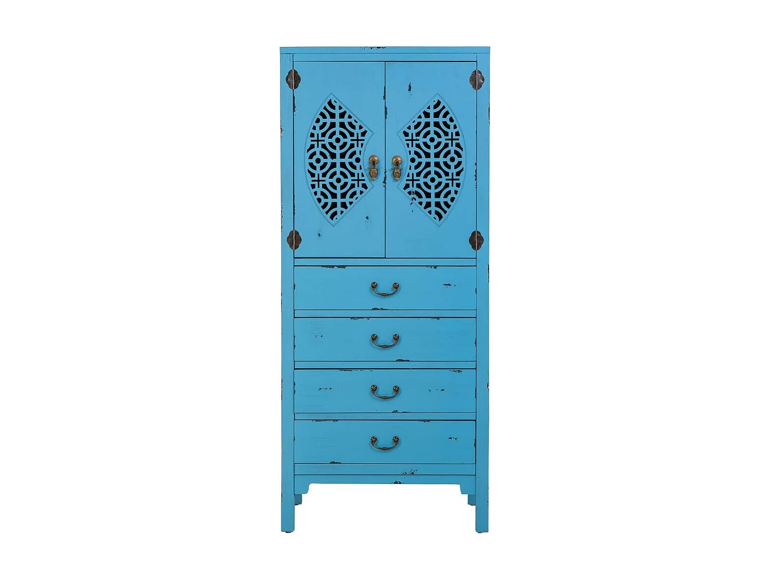 Holzkleiderschrank mit 4 Schubladen und 2 Türen, 60x40x140H cm. Blau