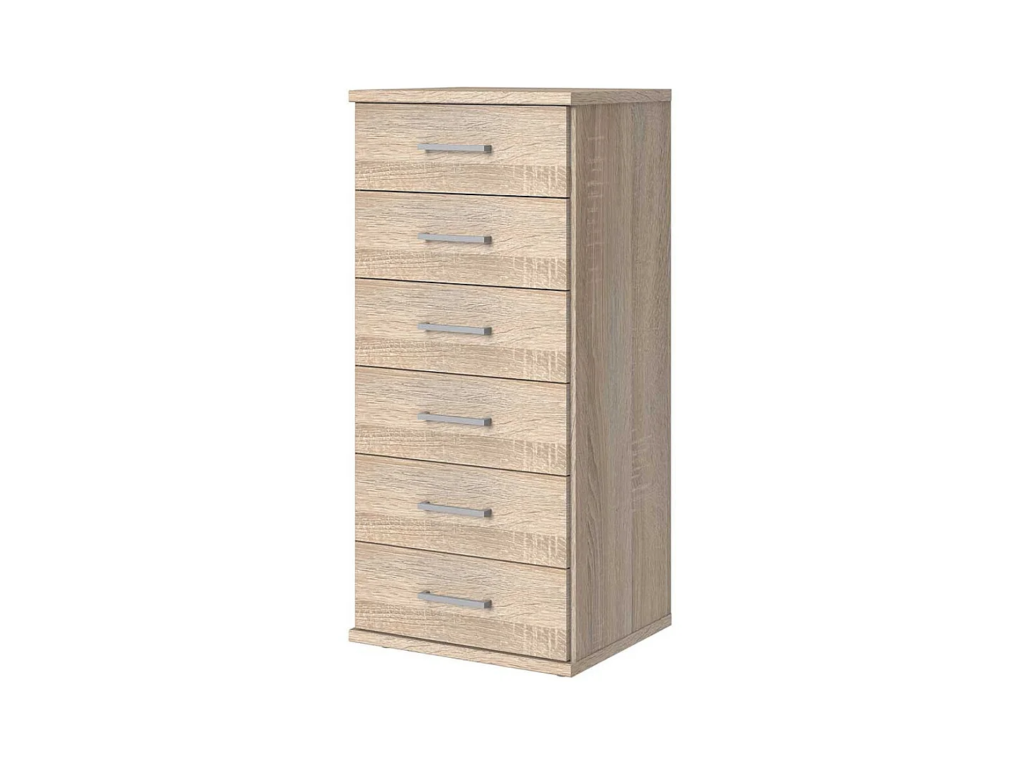 Holzoptik Hochkommode sägerau mit sechs Schubladen 106 cm hoch