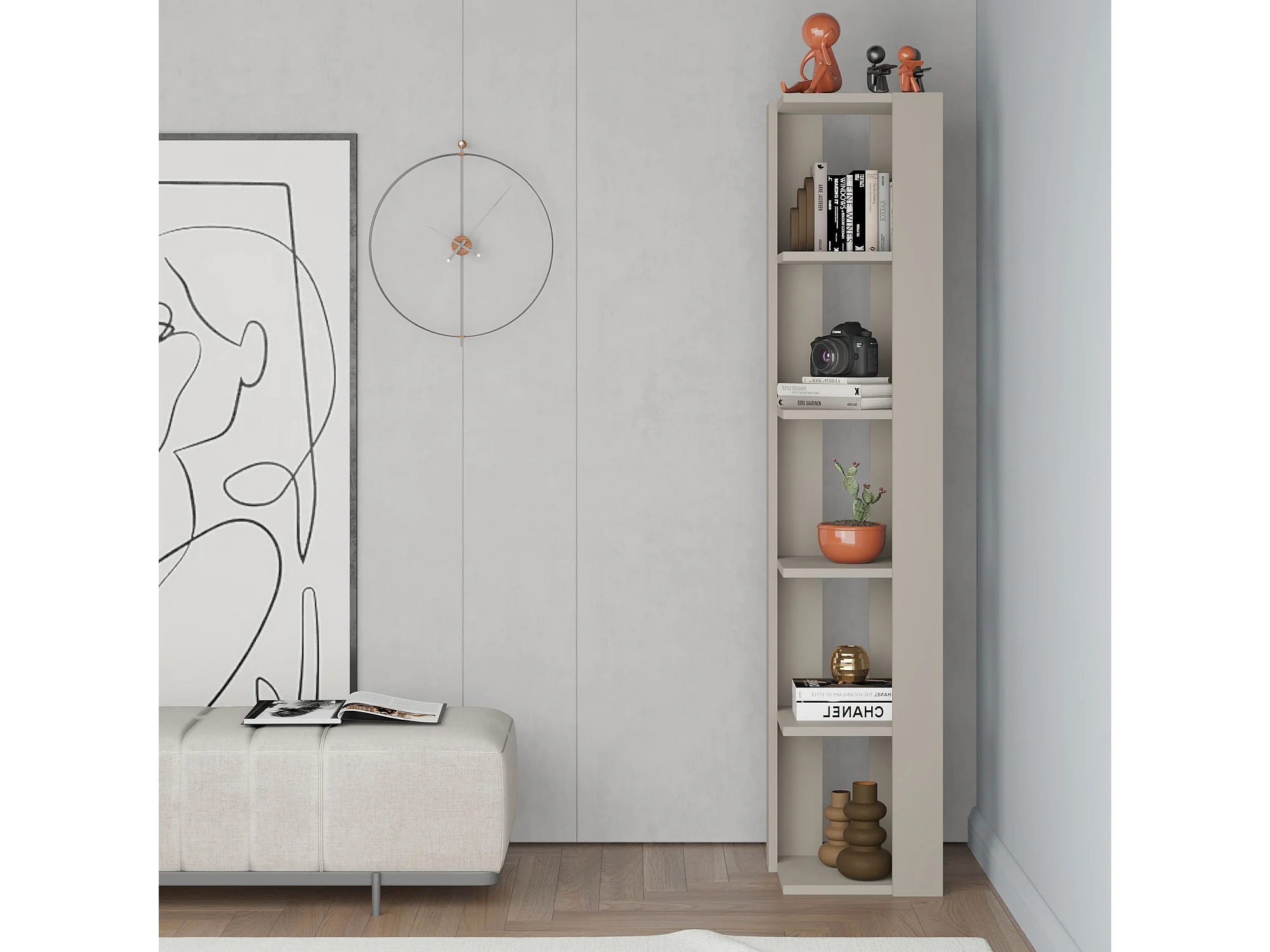 Holzregal "Nati" 5 Regalböden 32x32x161 cm Farbe Sandstein, modernes und natürliches Design