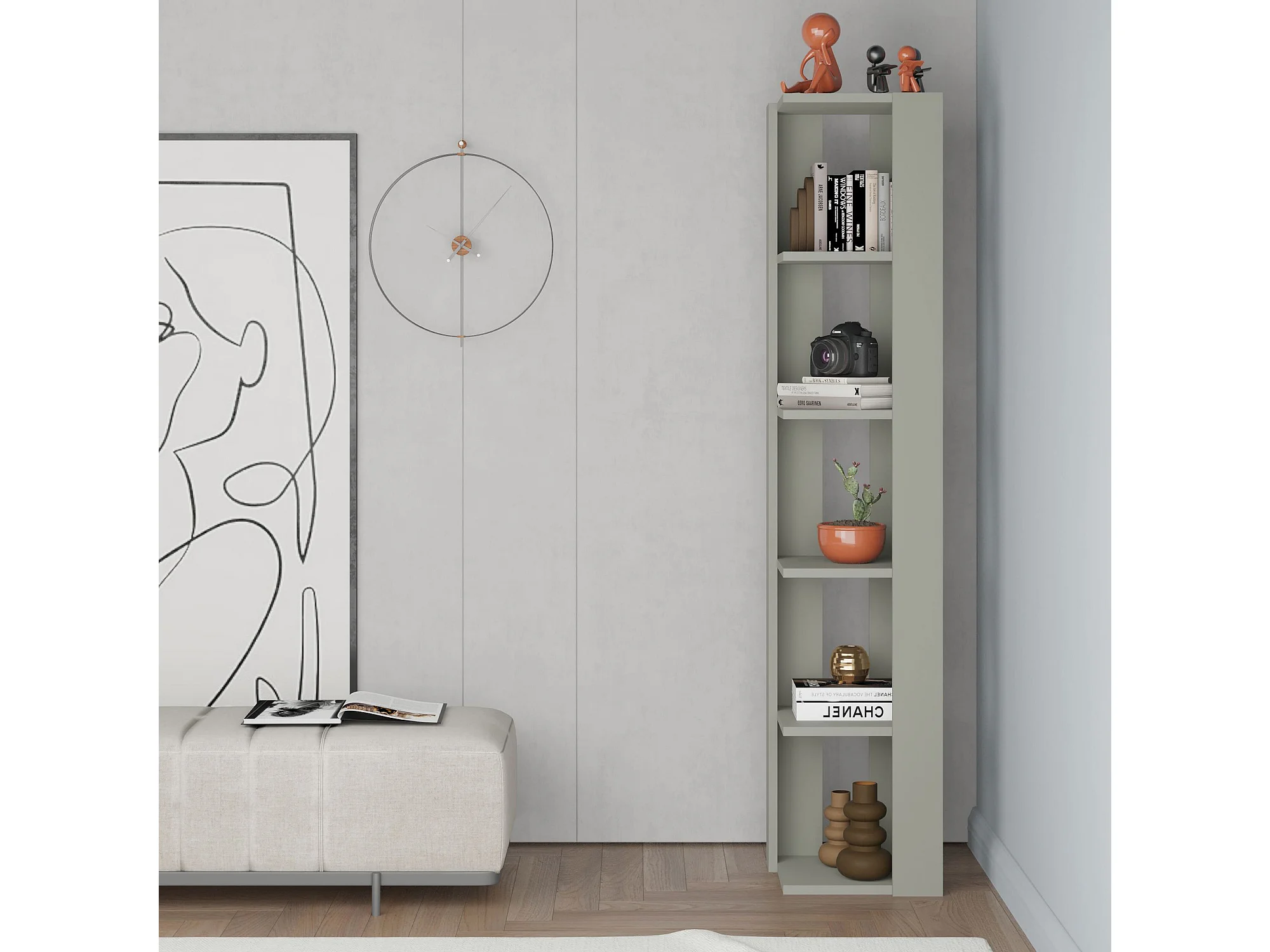 Holzregal "Nati" grün 32x32x161 cm, 5 Regalböden, modernes Design und Tragfähigkeit 20 kg