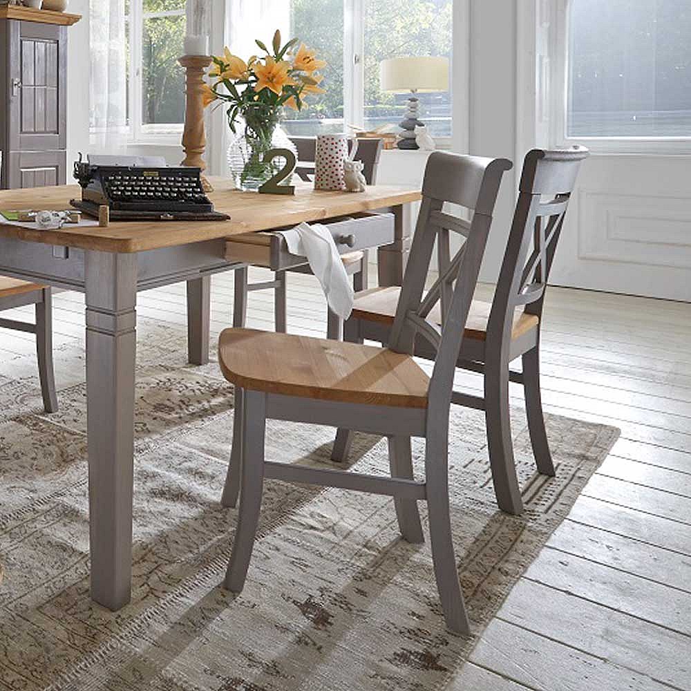 Holzstuhl in Grau Kiefer Massivholz (2er Set)