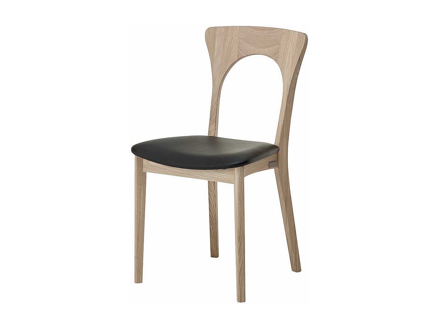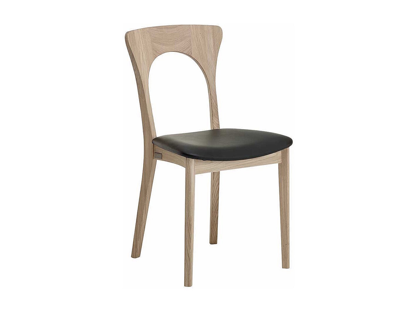 Holzstuhl Set aus Eiche Bianco geölt Leder Schwarz (2er Set)