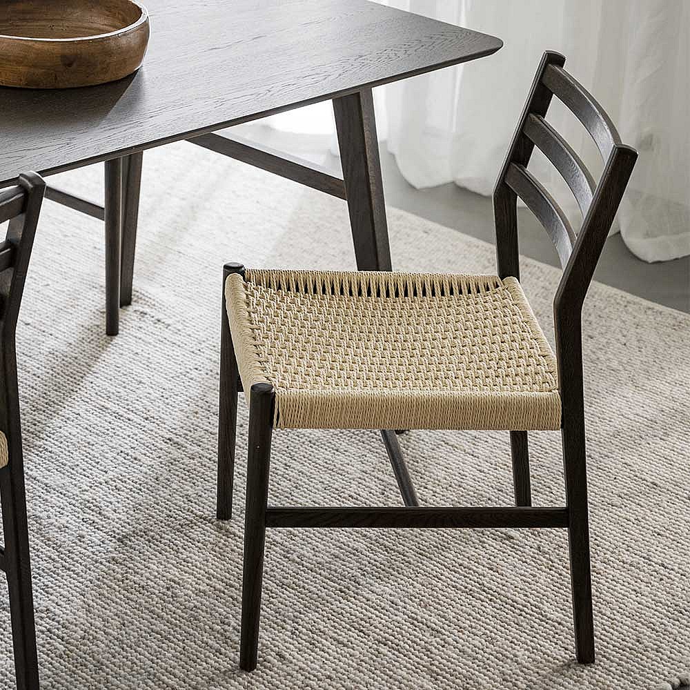 Holzstuhl Stuhl K�che mit Bezug aus Geflecht und Gestell aus Massivholz (2er Set)