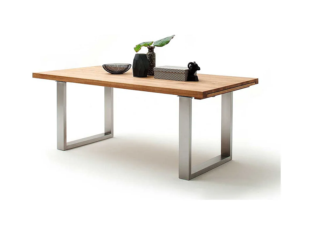 Holztisch aus Wildeiche Massivholz Bügelgestell aus Edelstahl