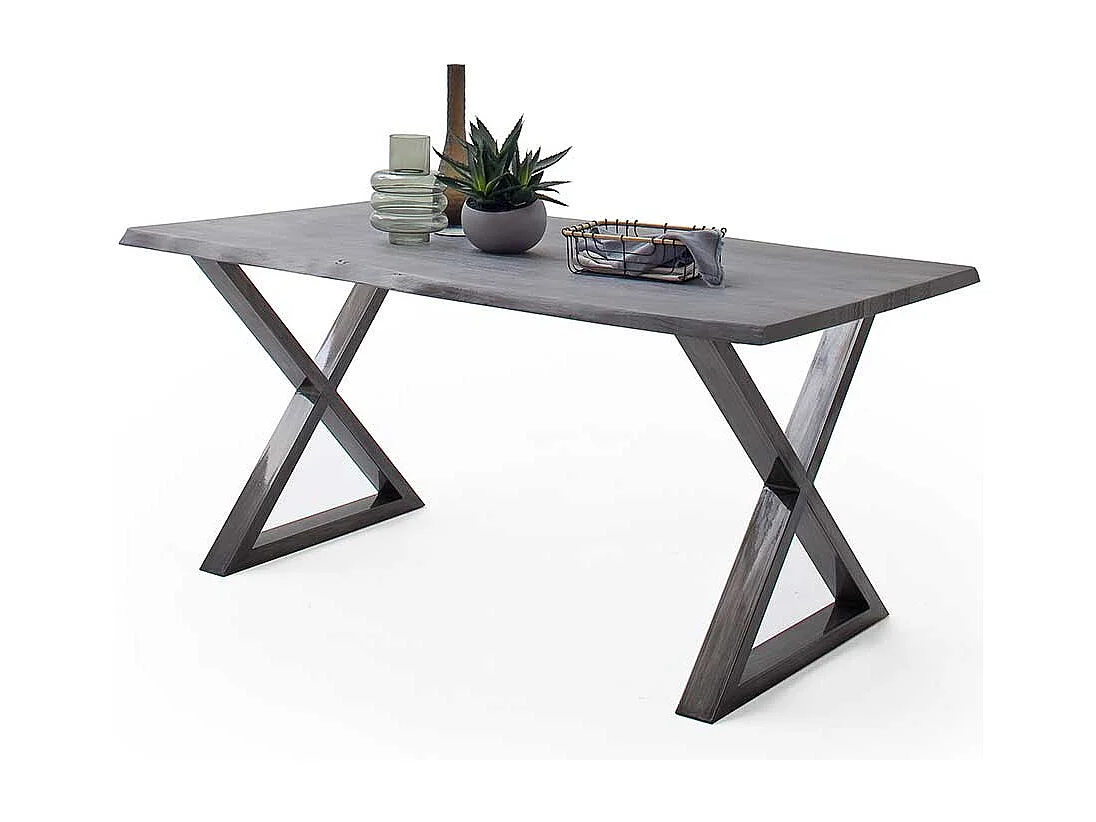 Holztisch Esstisch mit X Gestell und natürlicher Baumkante