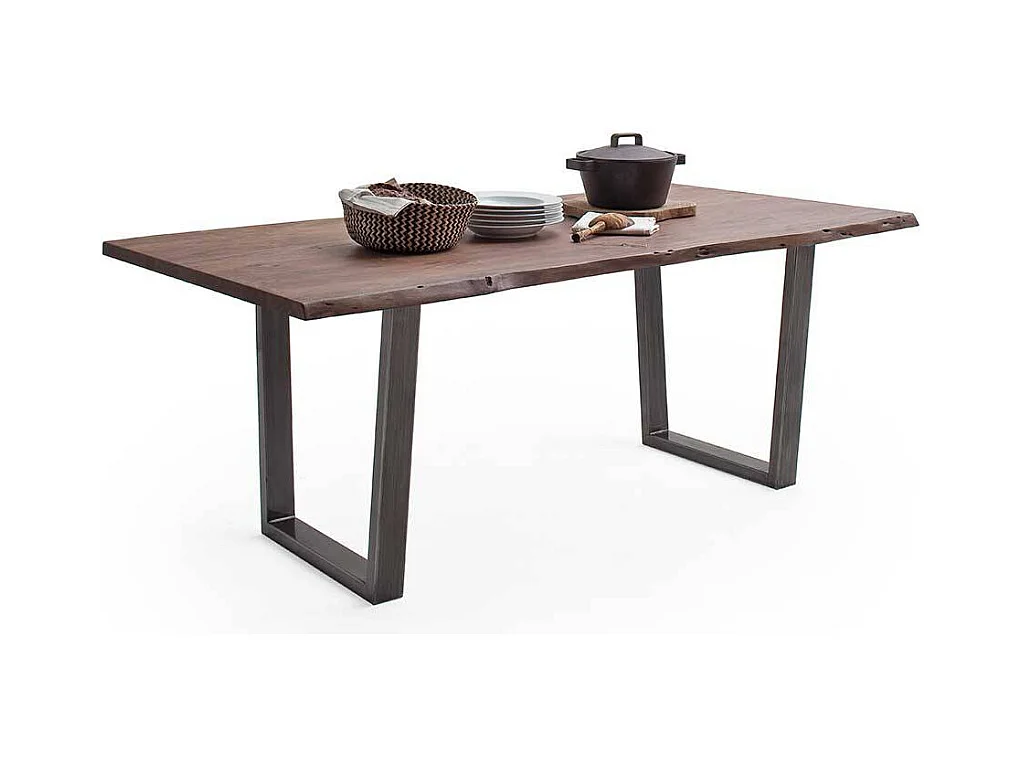 Holztisch Massiv Küchentisch in Walnussfarben mit Bügelgestell