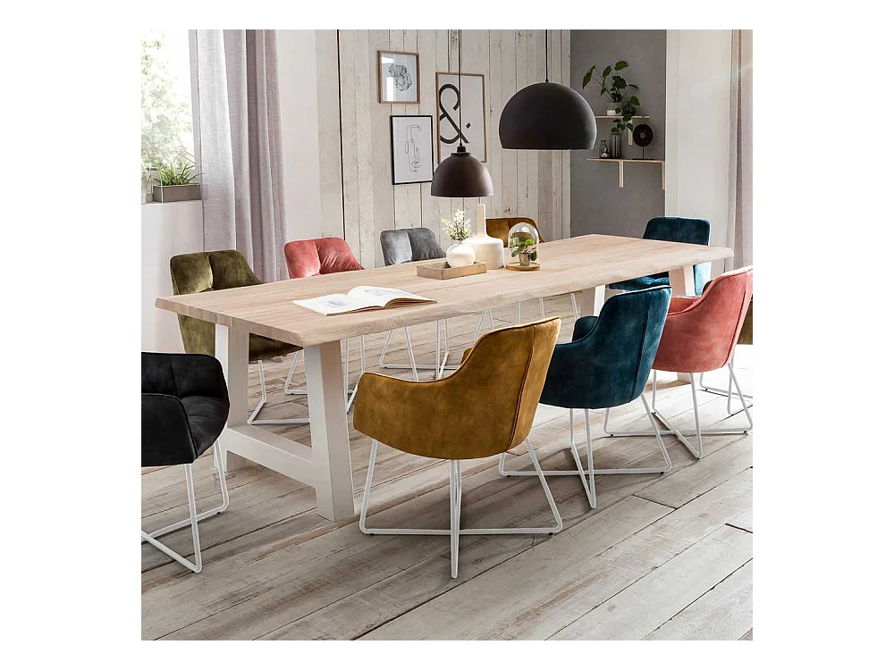 Holztisch Massiv mit Baumkante Platte A Form Gestell