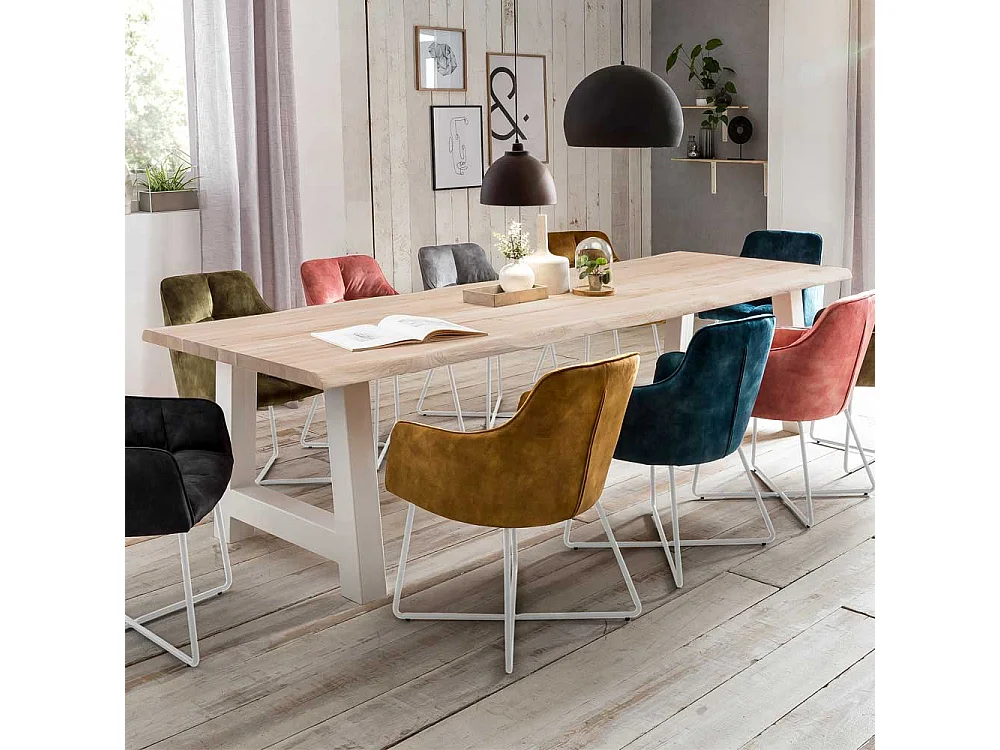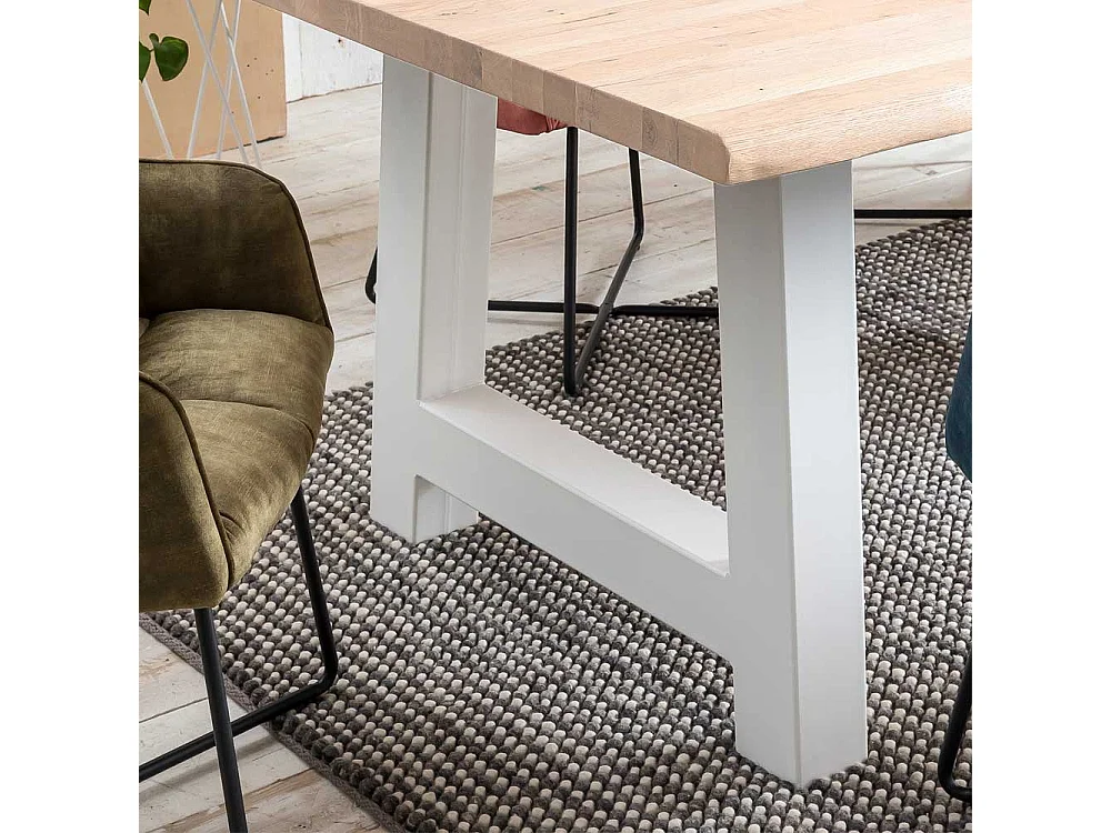 Holztisch Massiv mit Baumkante Platte A Form Gestell