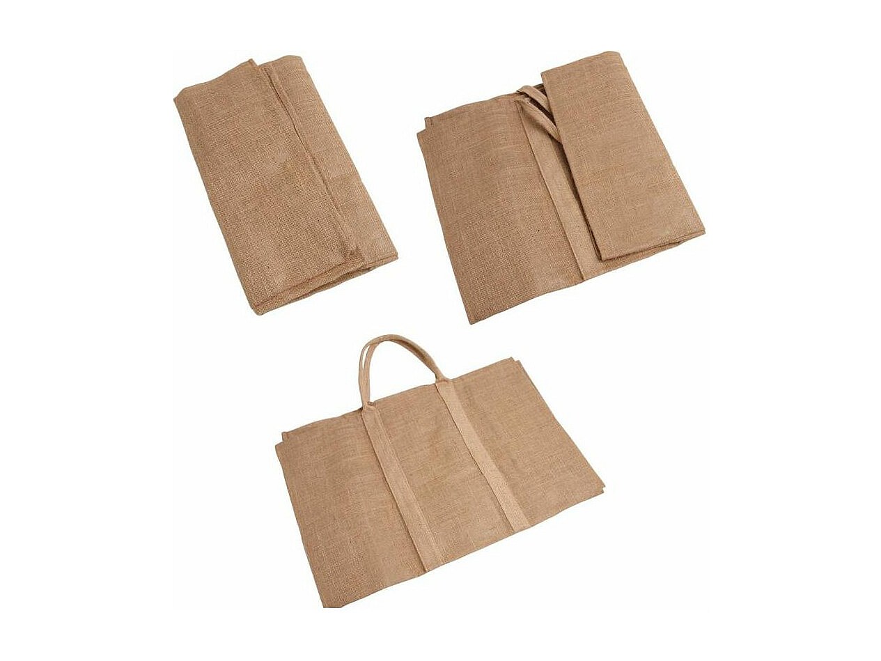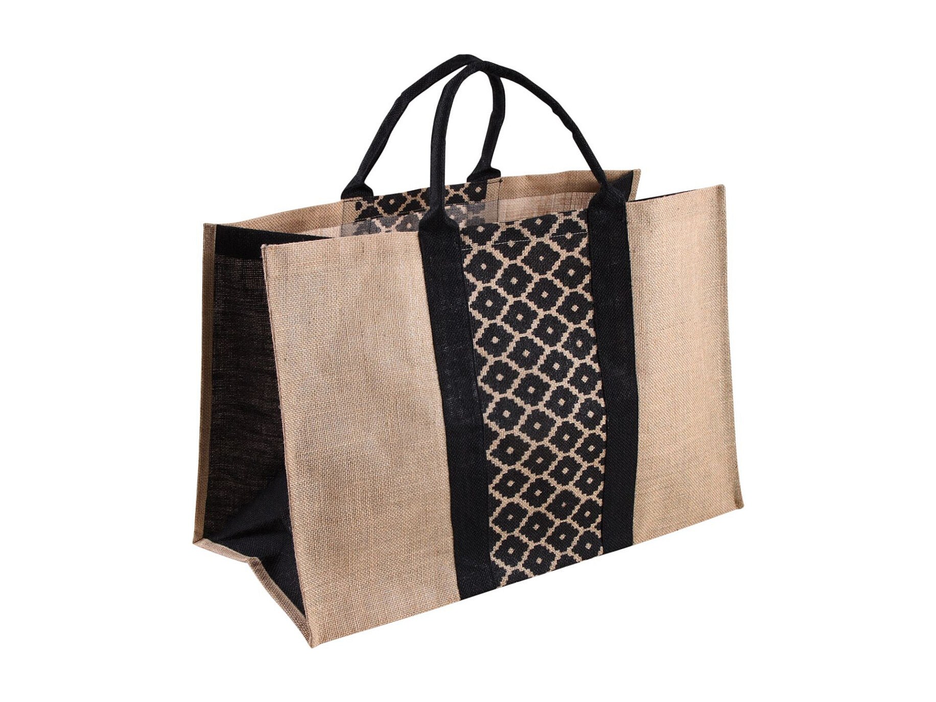 Holztragetasche aus kunststoffbeschichteter ungefärbter und schwarzer Naturjute