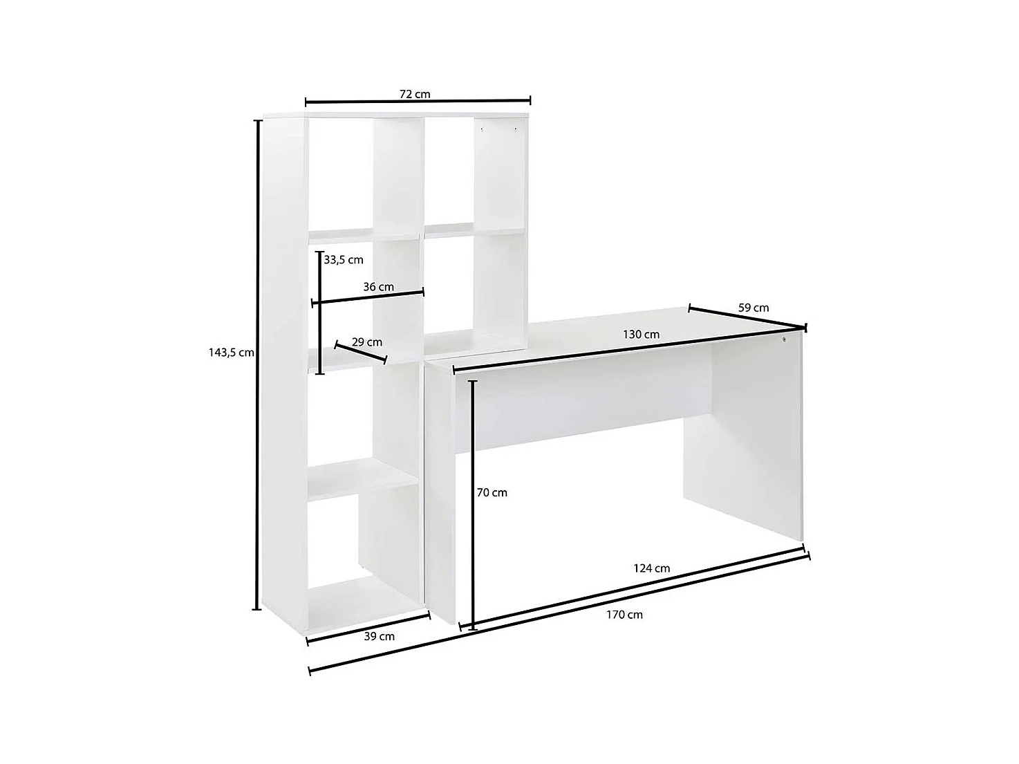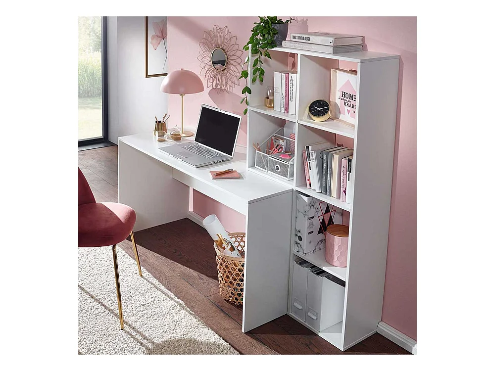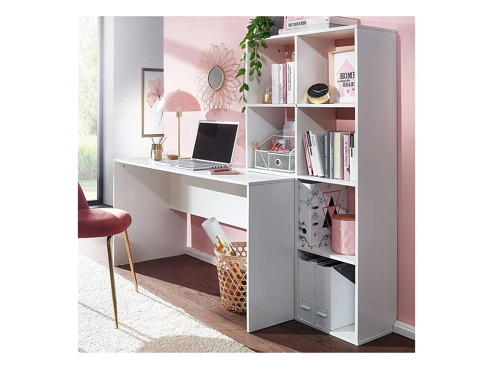 Home Office mit Regal weiss 170 cm Breite 144 cm Höhe