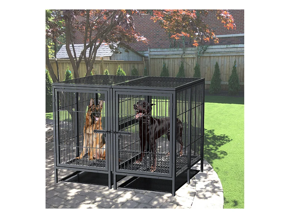 Hundekäfig mit 3 Innentüren, große XXL Hundebox mit herausnehmbarer Wanne 90x62x68cm