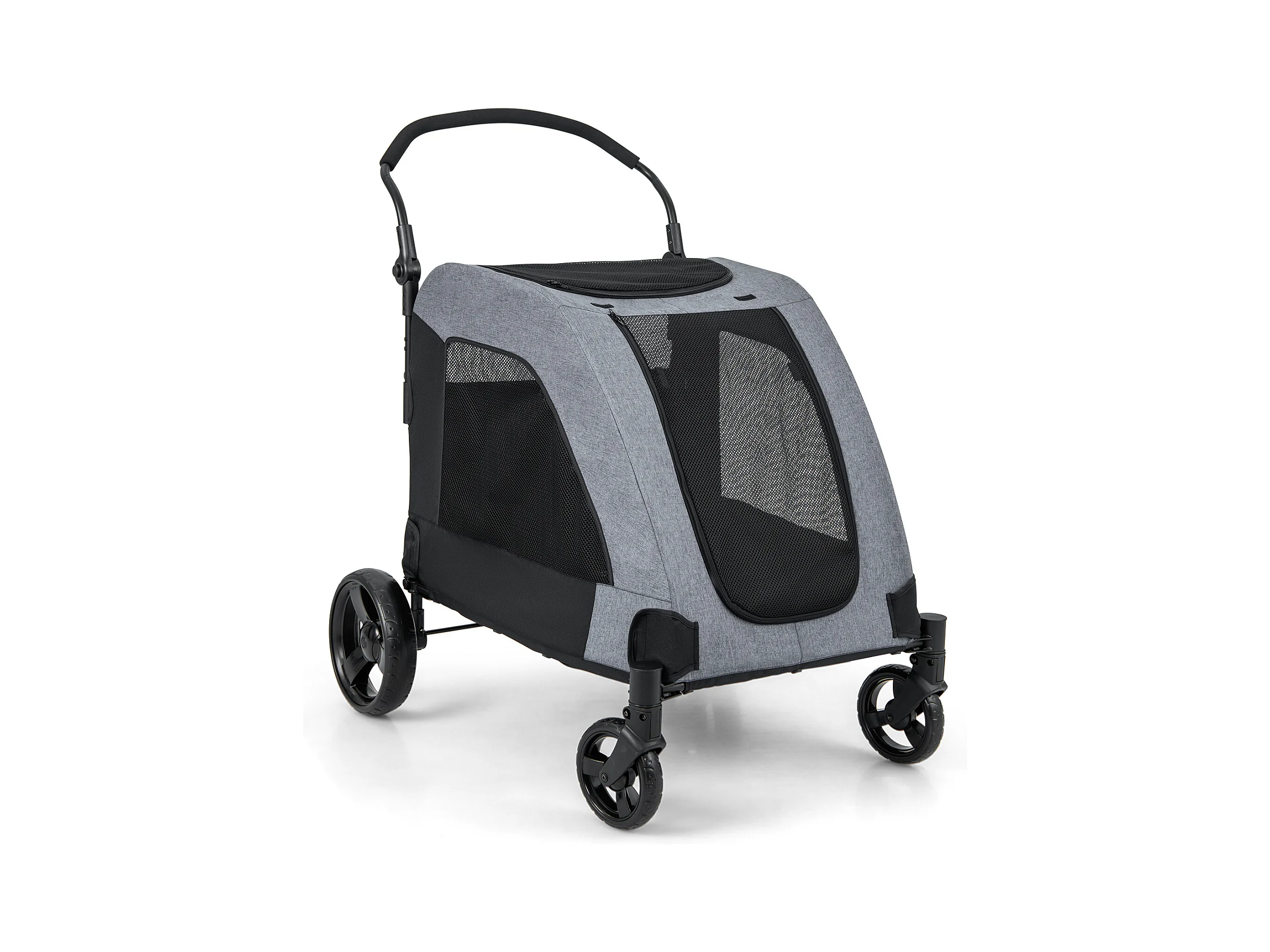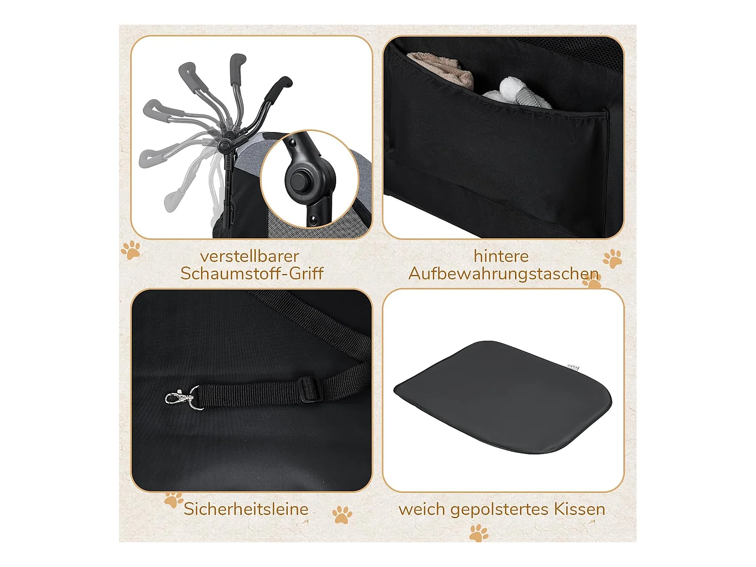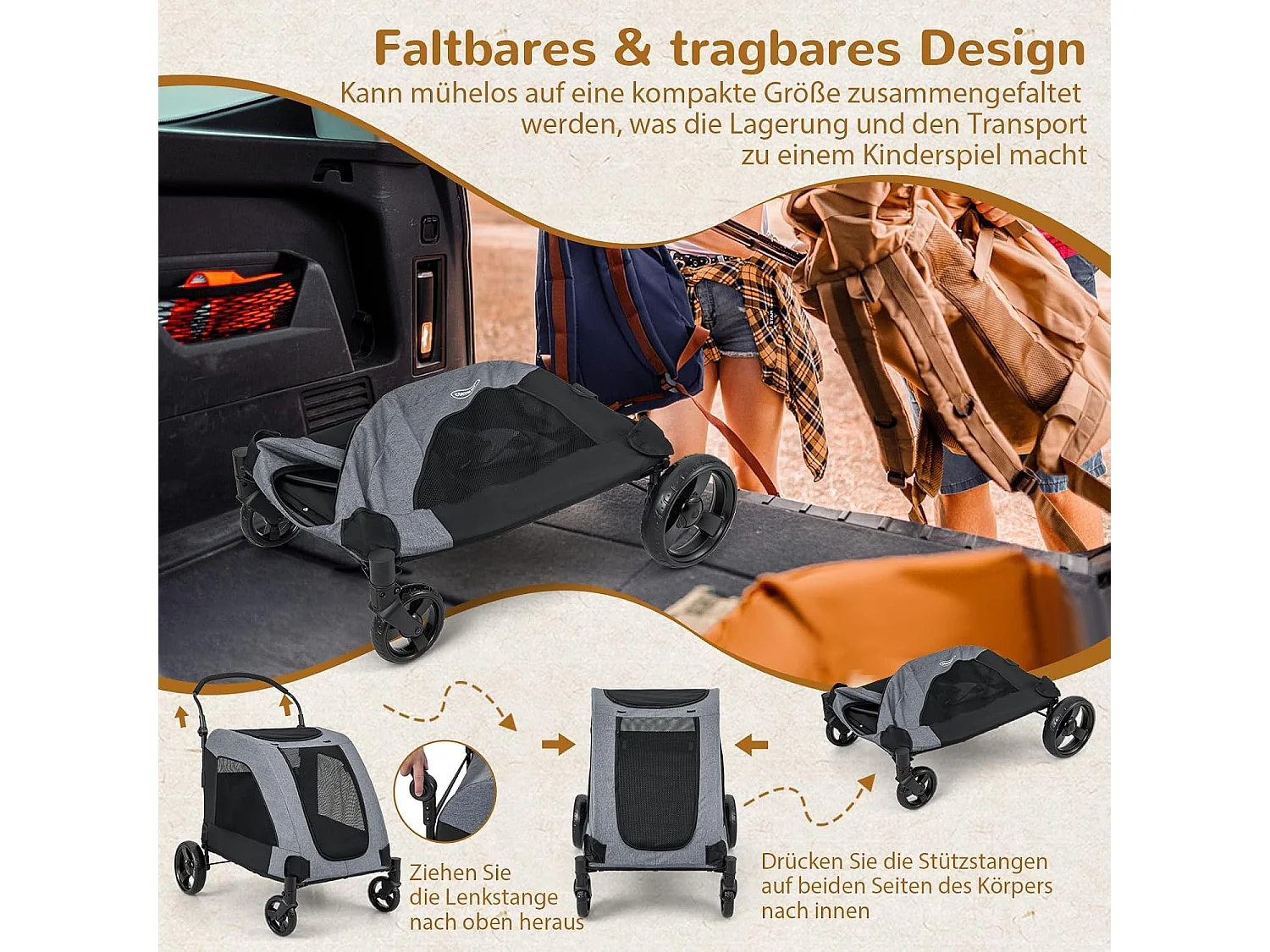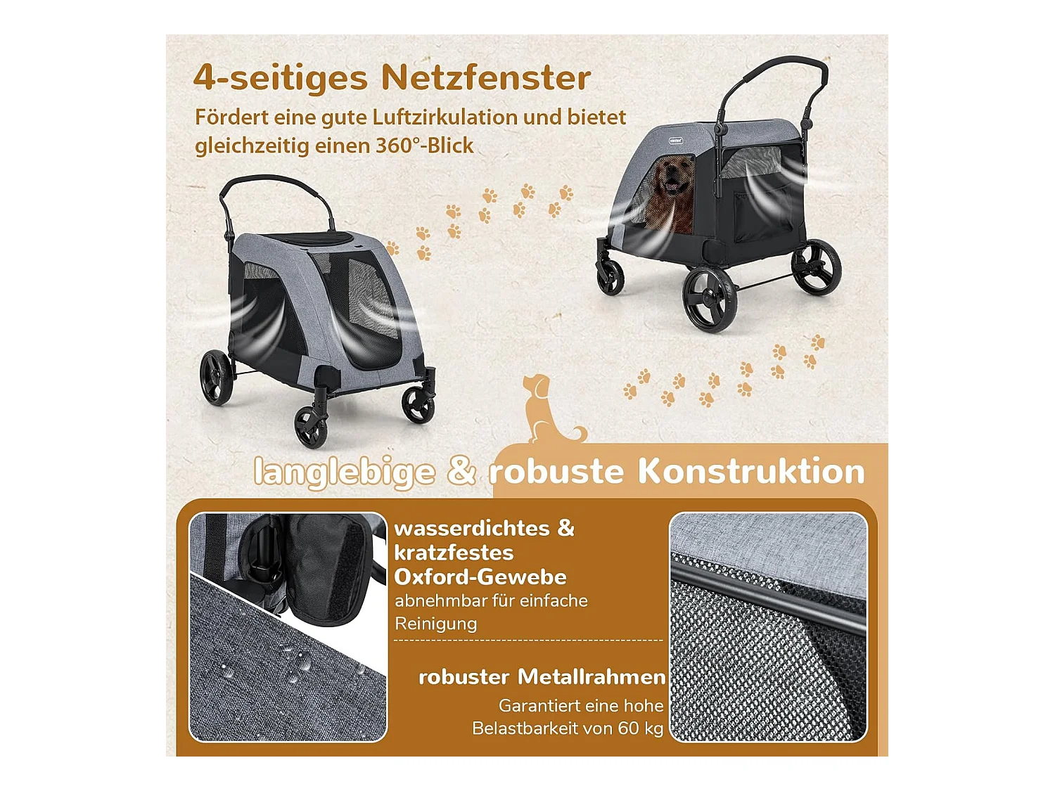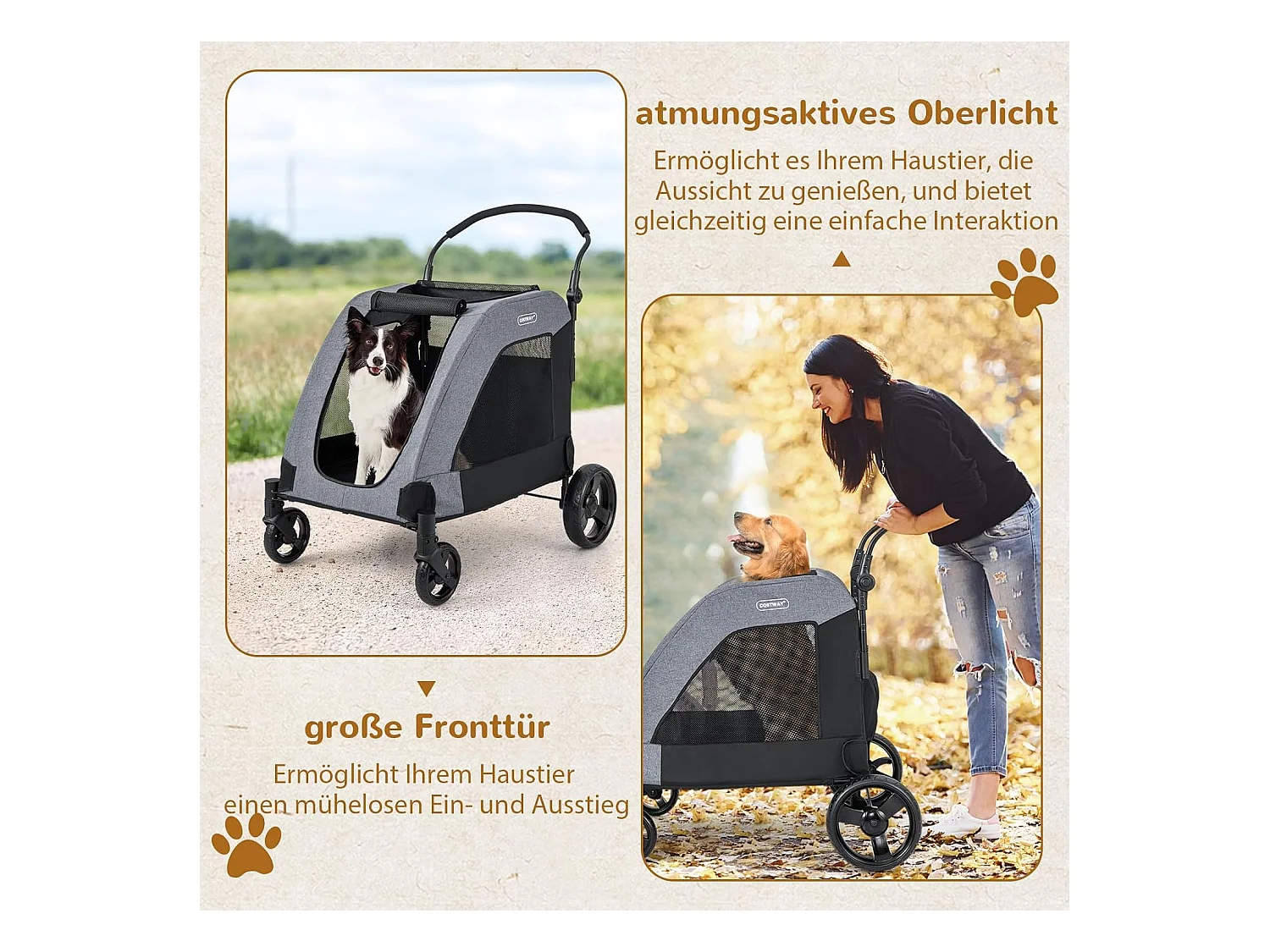 Hundewagen bis 60kg, Hundebuggy klappbar, mit Vordertür, Dachfenster, verstellbarem Griff