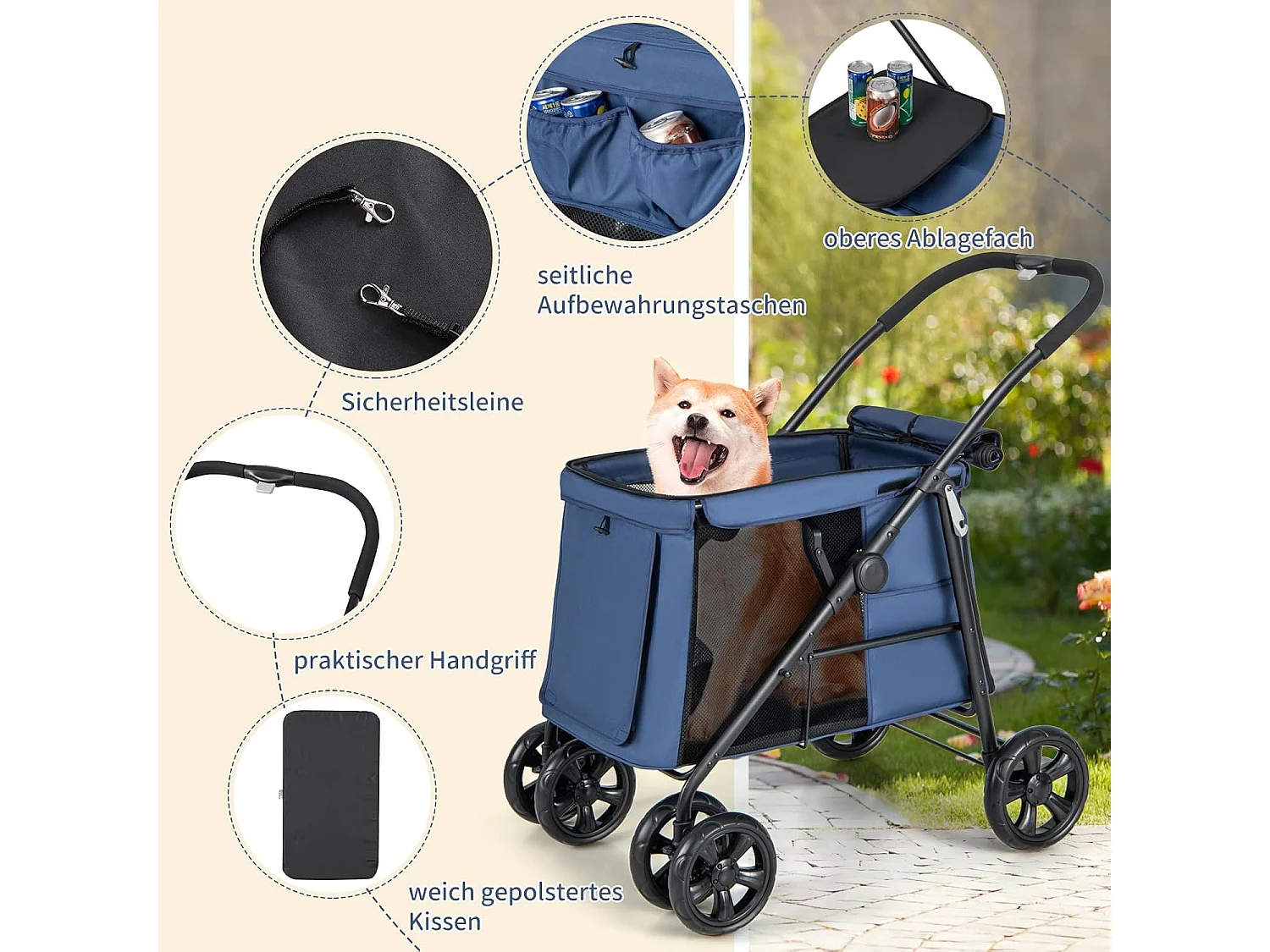 Hundewagen klappbar, Hundebuggy bis 40 kg, Hundetrolley mit Kissen, Netzfenstern, 2 Türen BI32296