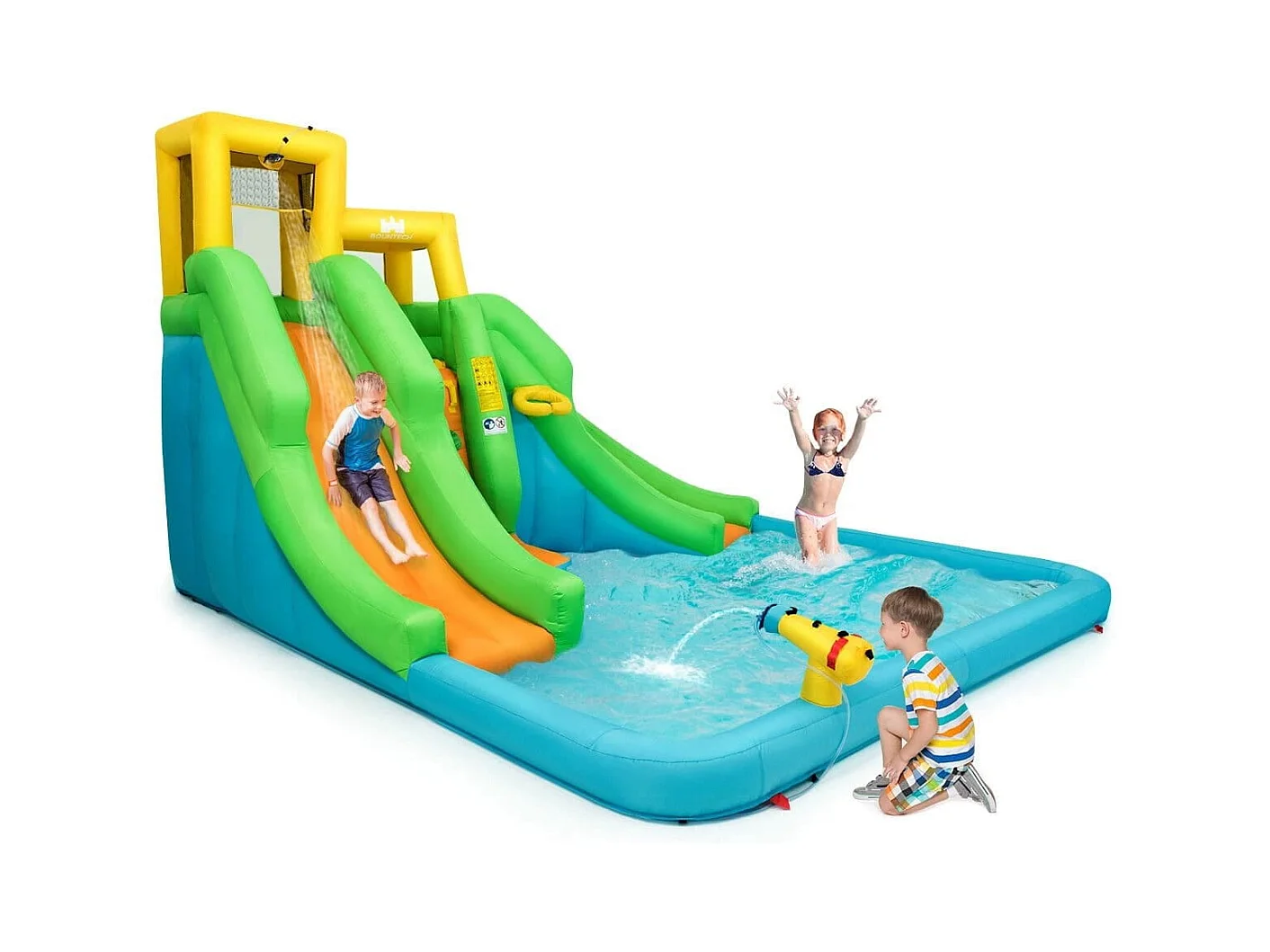 Hüpfburg mit Gebläse Wasserpark mit Zwei Rutschen 400 x 361 x 255 cm