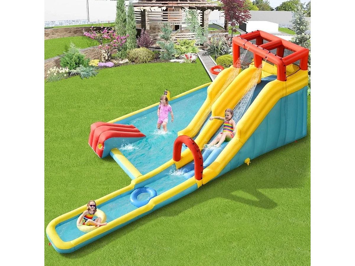 Aufblasbare Hüpfburg mit Langen Doppelrutschen Kletterwand und Wasserkanone 622 x 335 x 225 cm (Nur Hüpfbur