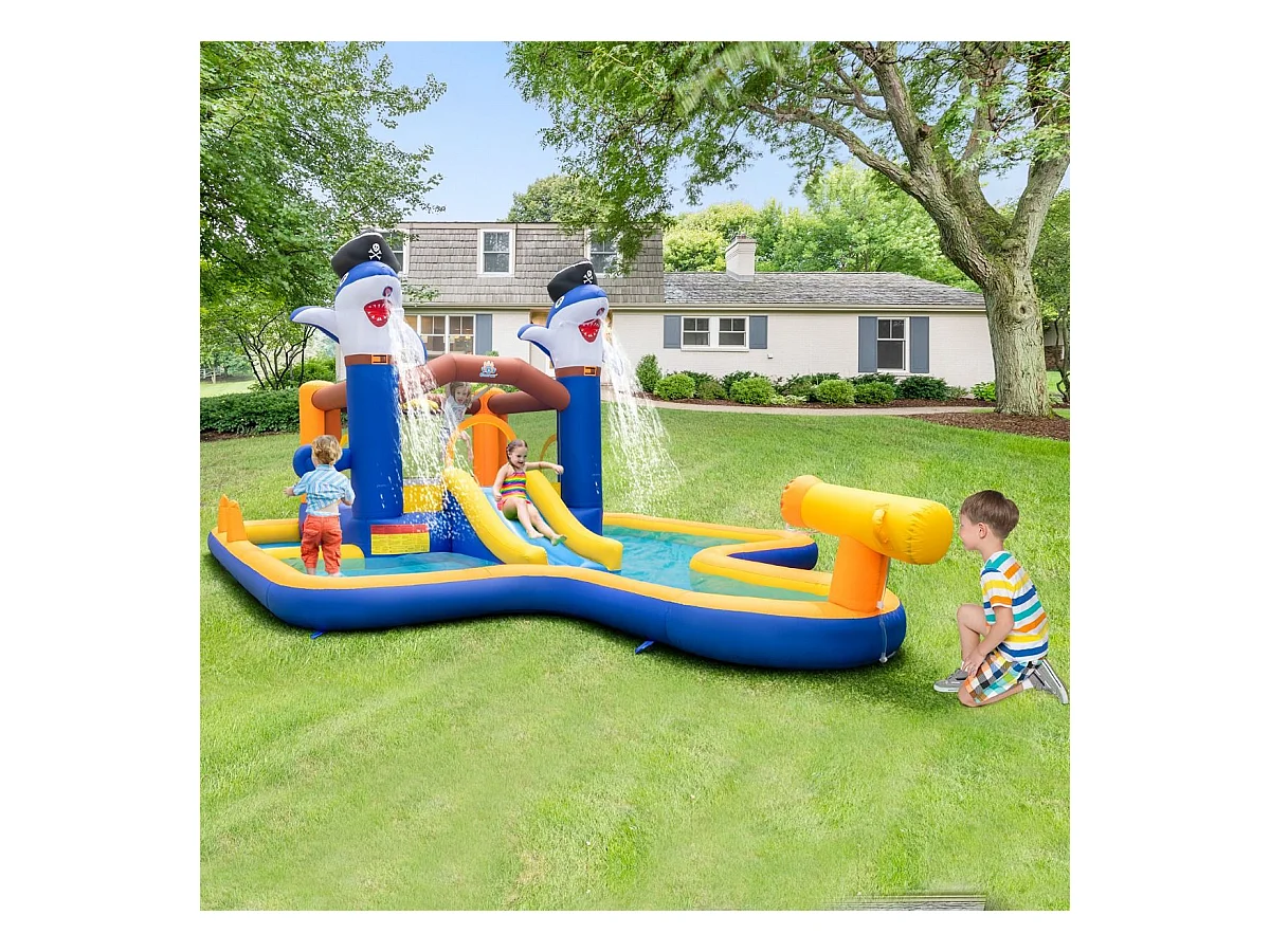 7-in-1 Wasserrutschenpark aufblasbares Hüpfhaus mit Spritzpool 578 x 408 x 250 cm