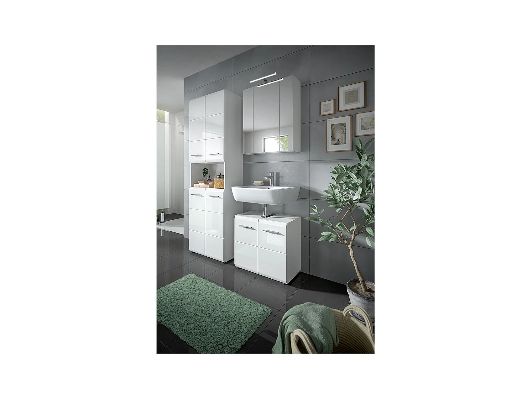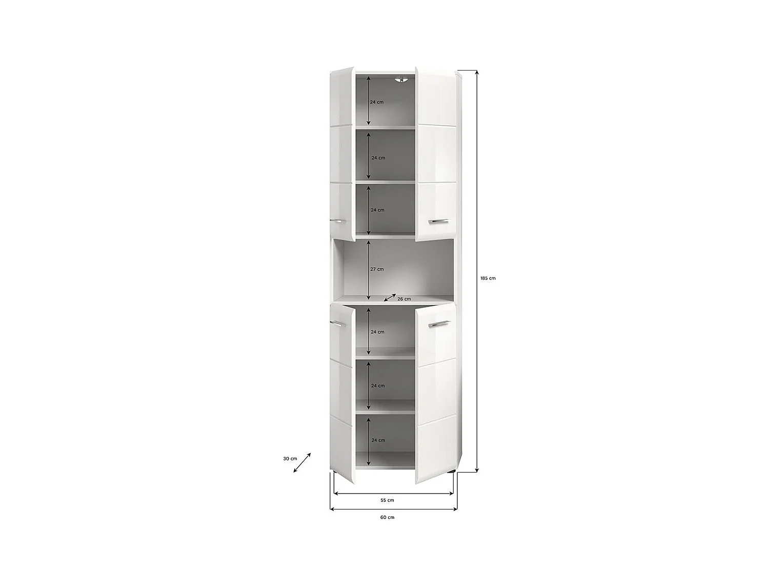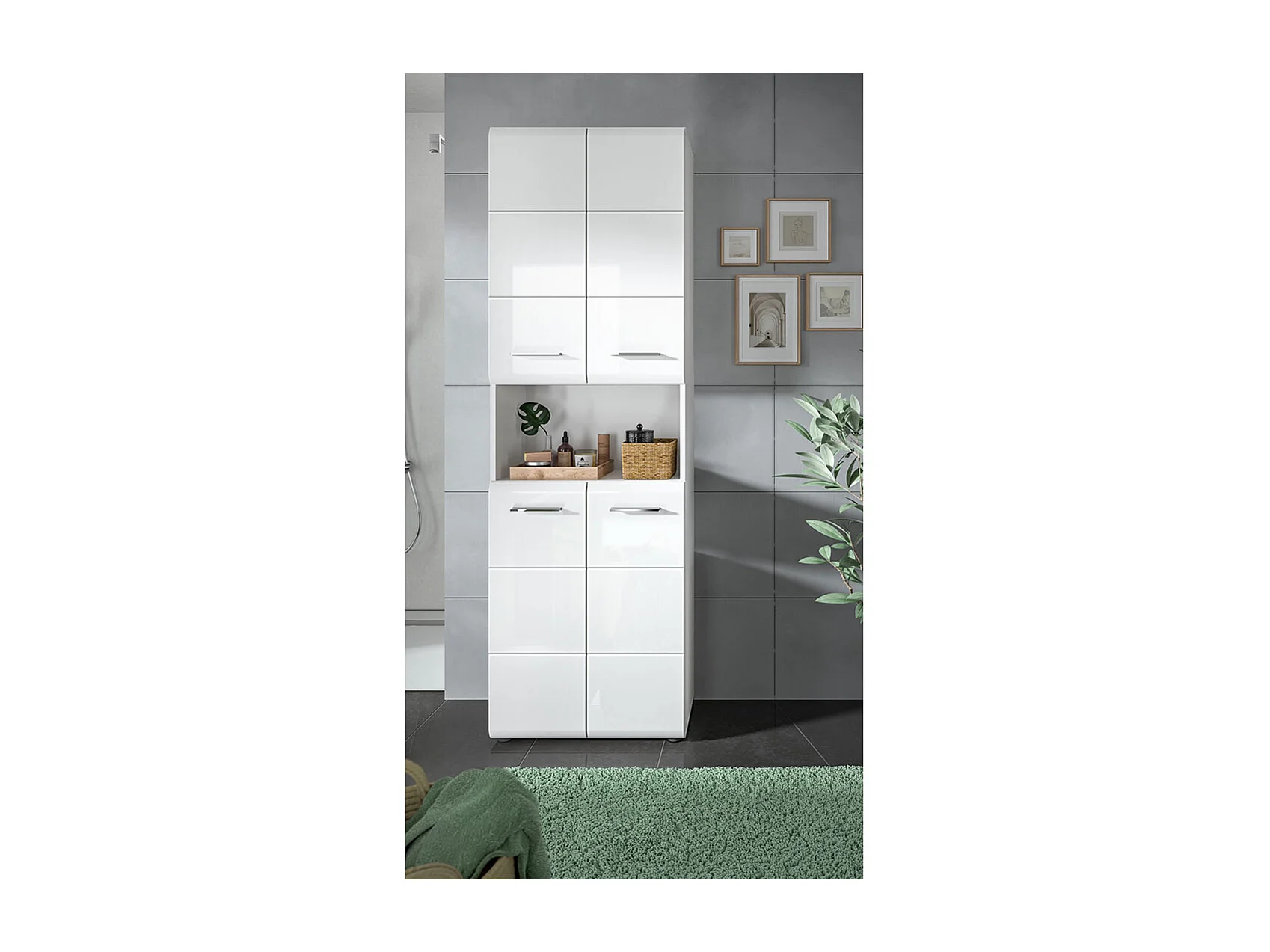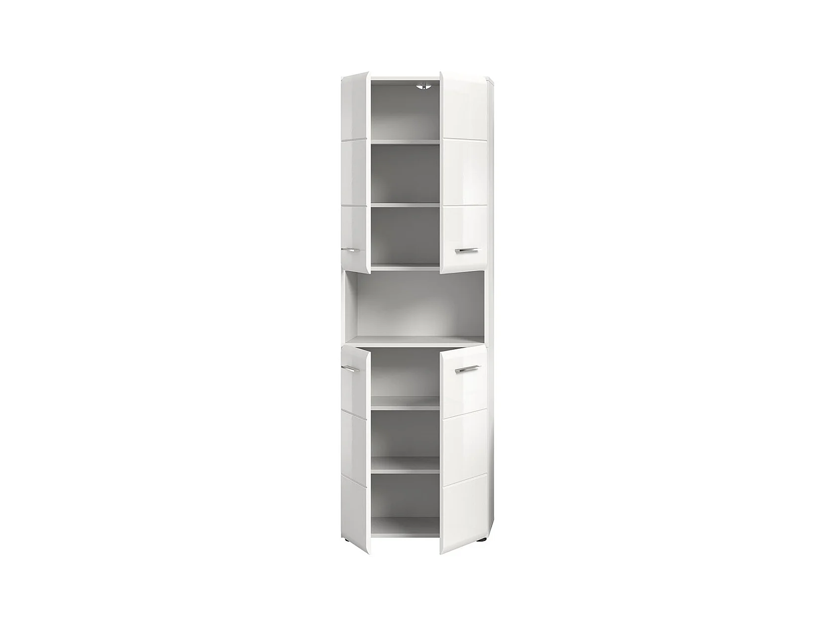 Ice Hochschrank Bad 4 Türen 1 Fach weiß Hochglanz.