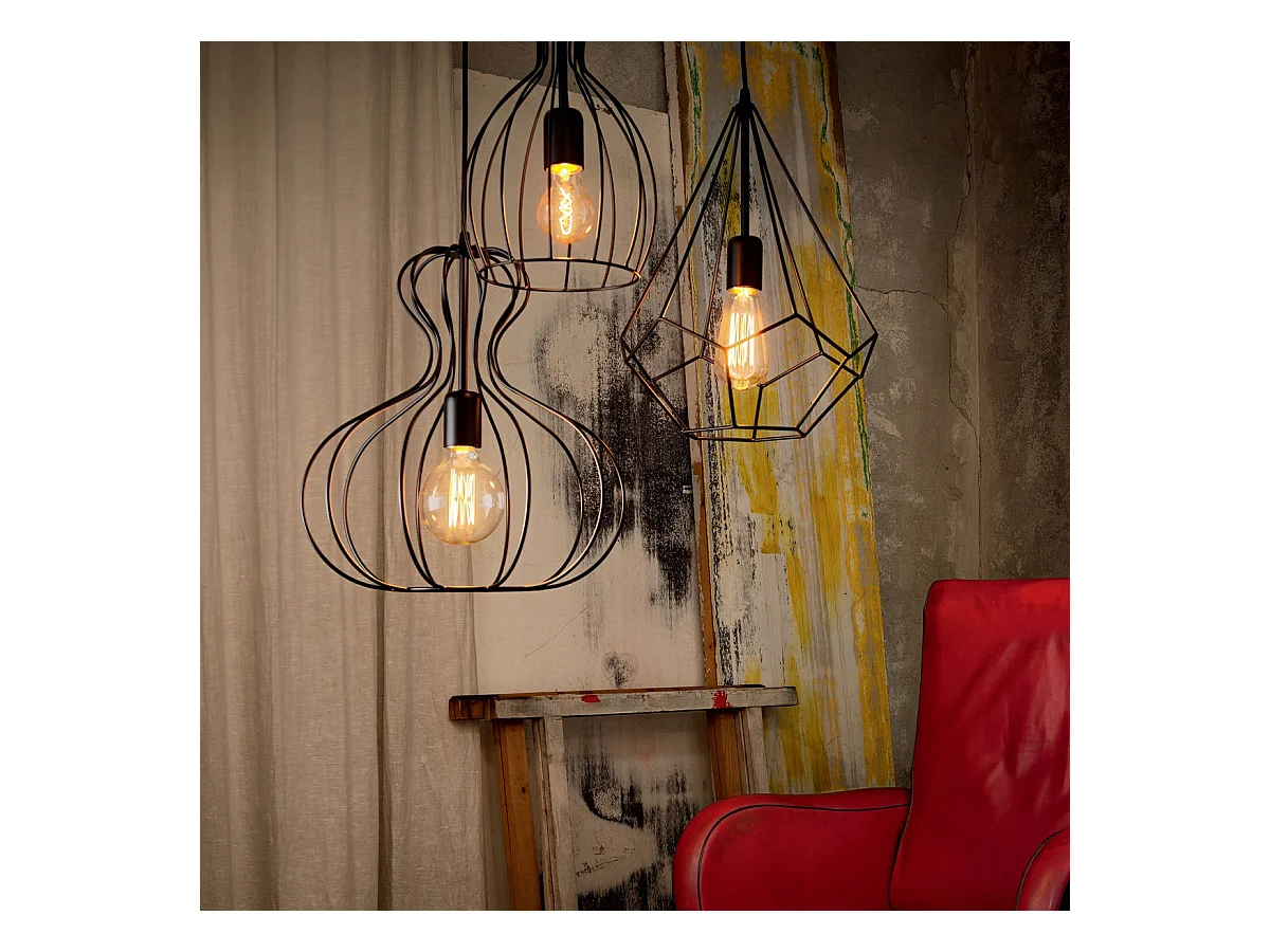 Ideal Lux Ampolla - 1 Licht Deckenanhänger Matt Black Cage Style, E27