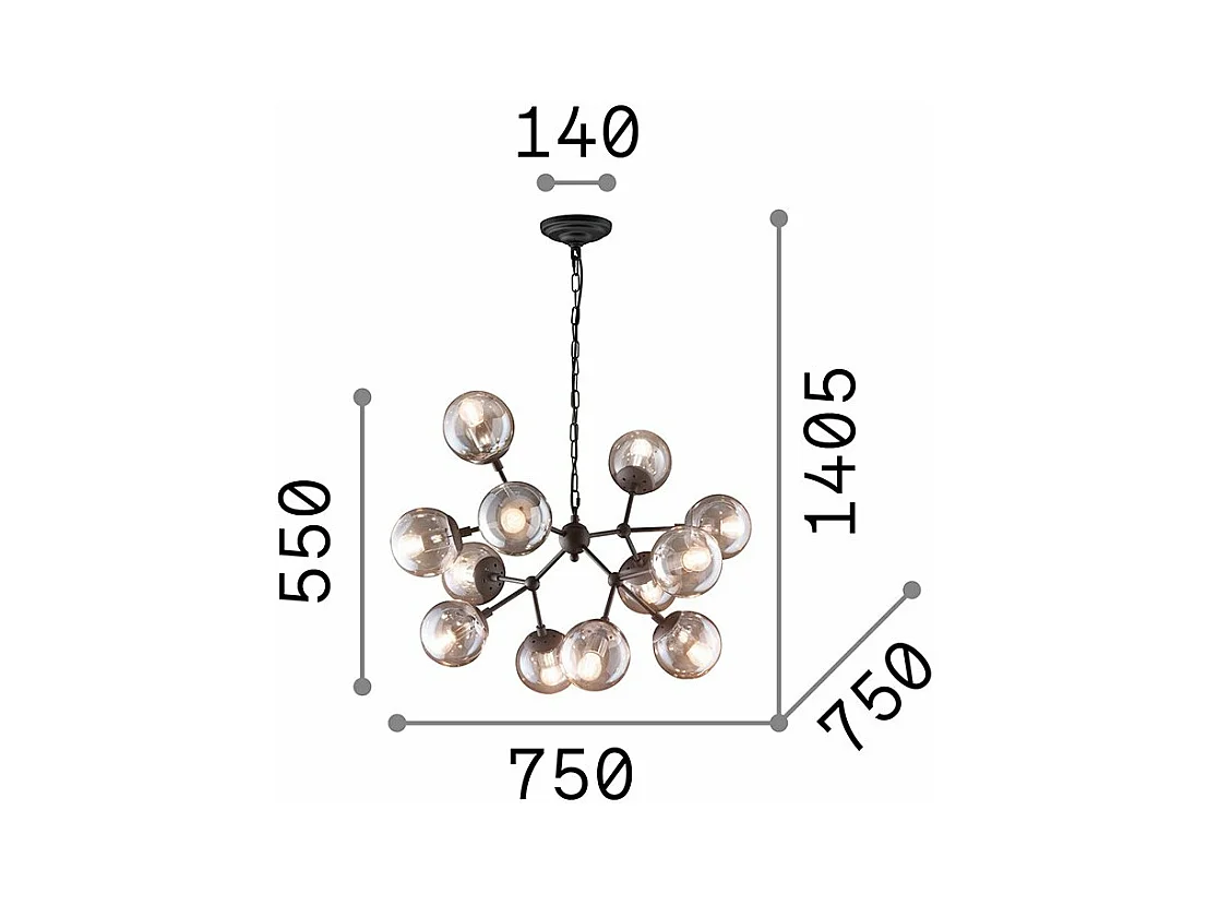 Ideal Lux Kepler - 12 Lichtdeckenanhänger Schwarz