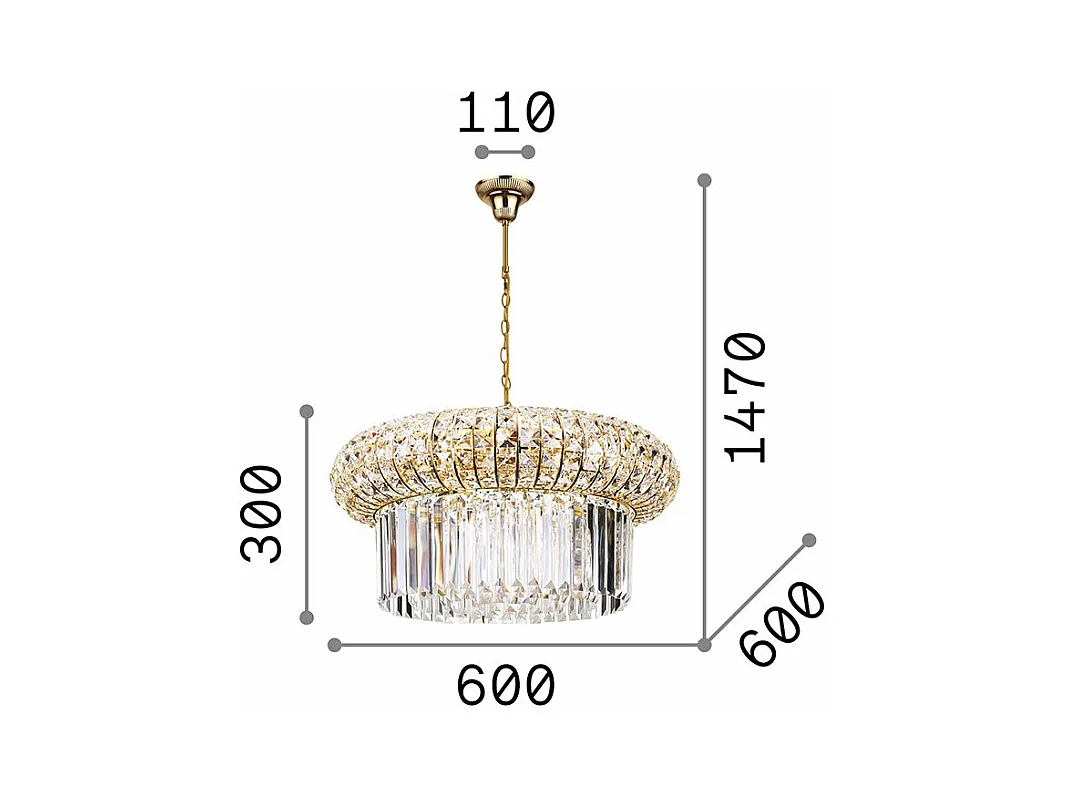 Ideal Lux NABUCCO - Innen Kristall Deckenpendelleuchte 12 Lichter Gold, E14