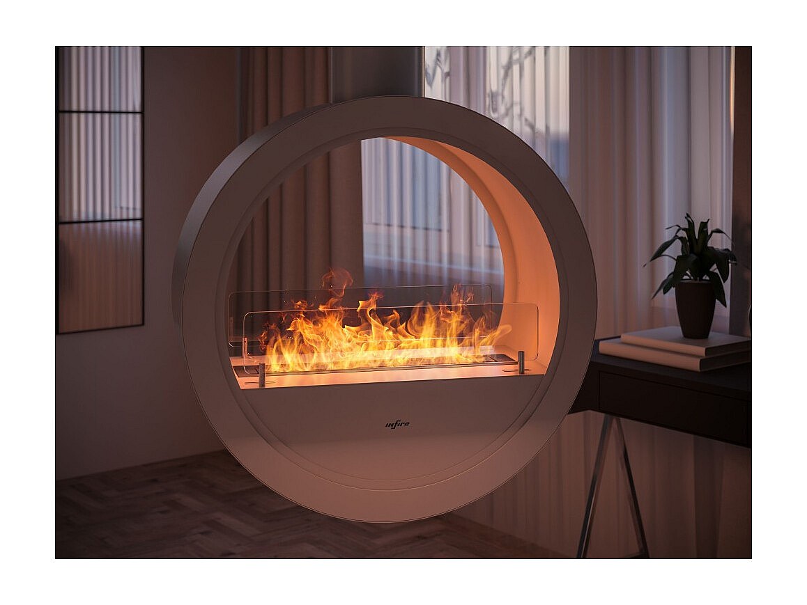 Incyrcle Slim 2Side Bioethanol-Kamin zur Deckenmontage – Runder Design-Biokamin mit doppelter offener Fassade, d. 70 cm, Weiß