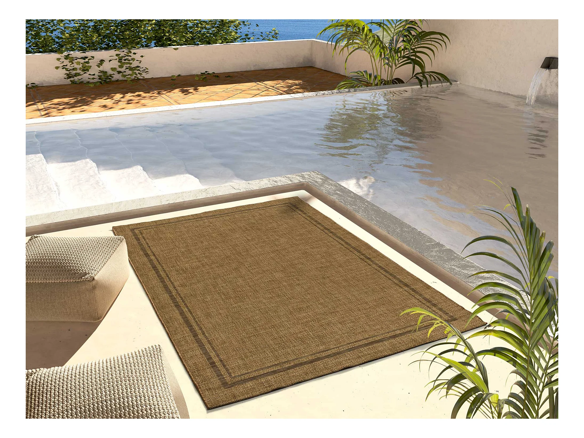 Indoor-Outdoor Teppich - Geometrischer Jute-Look - natürlich - 80x150 cm - GUINEA
