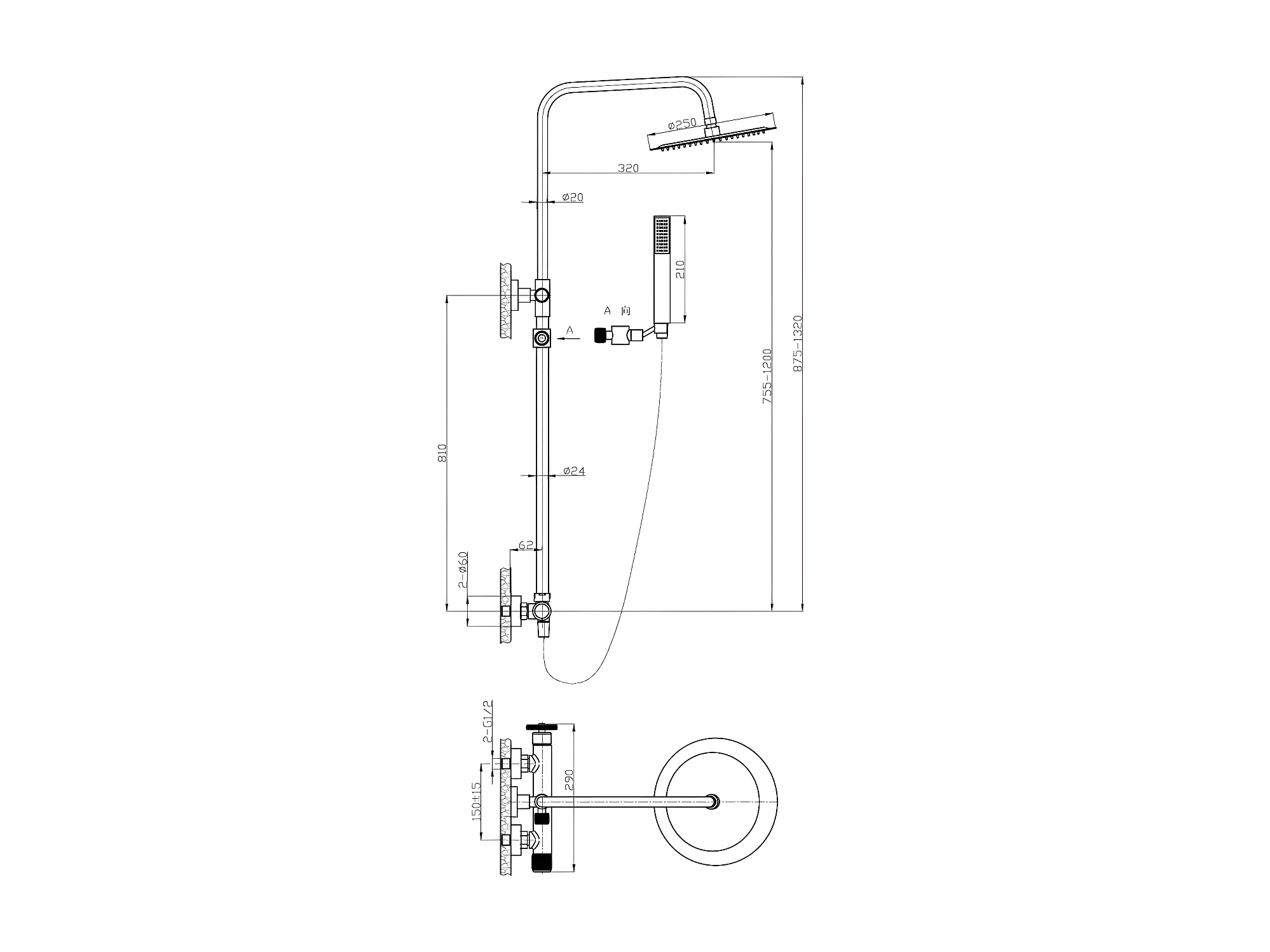 Indus Duschsäule Mechanische schwarz Essebagno