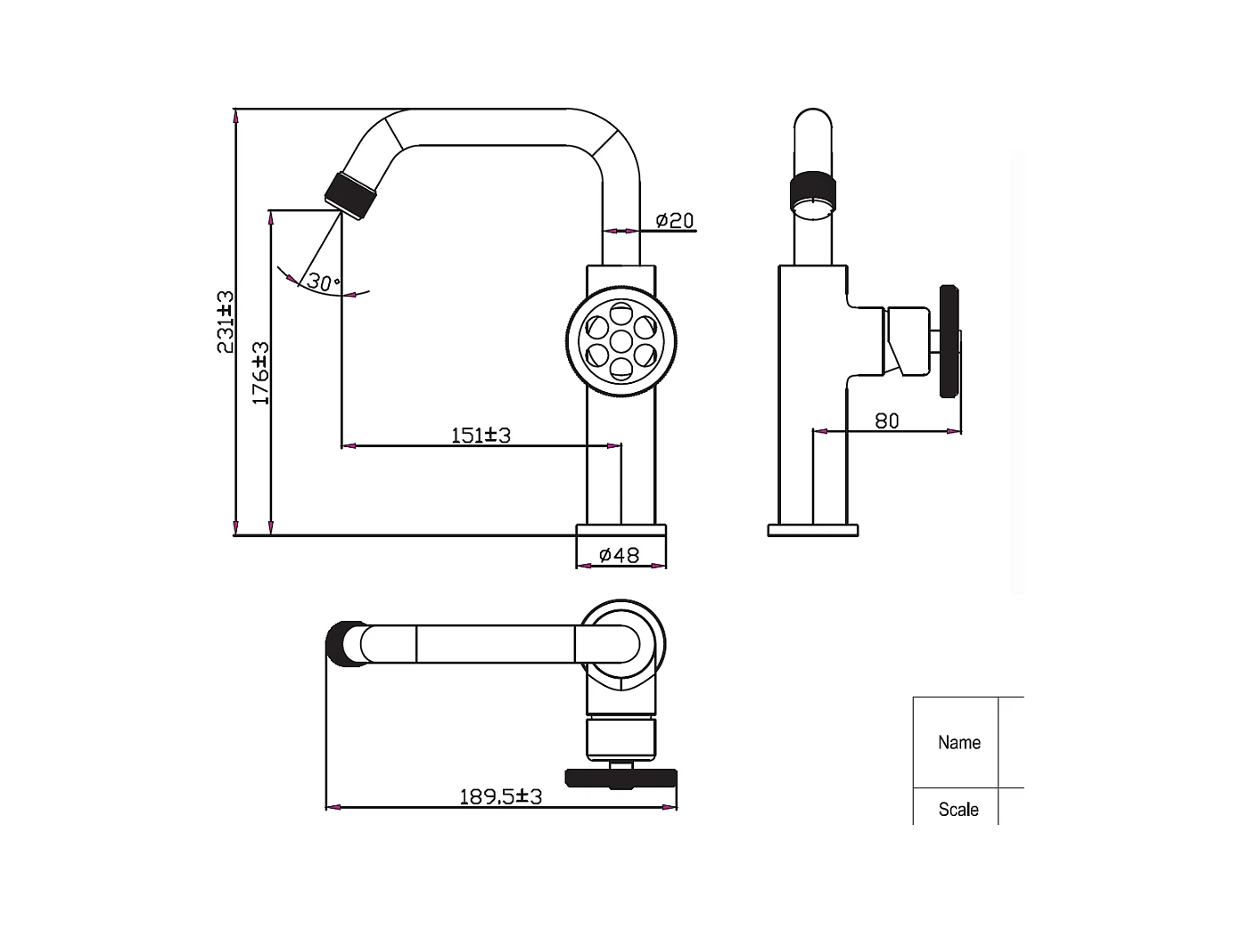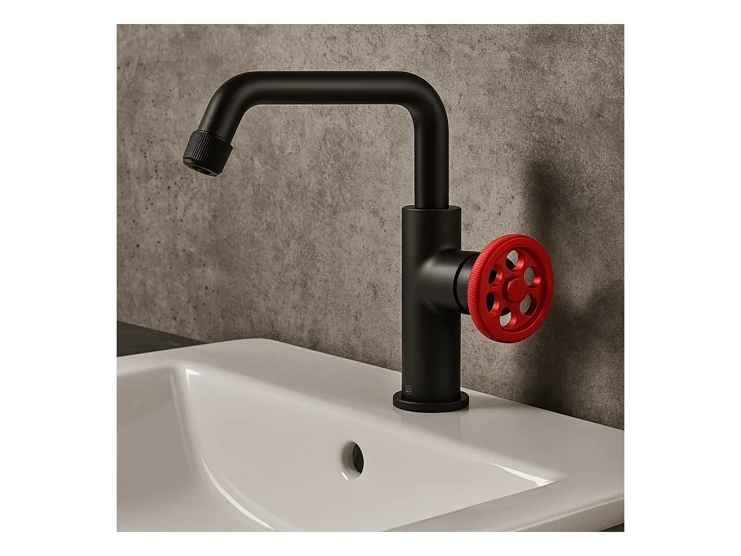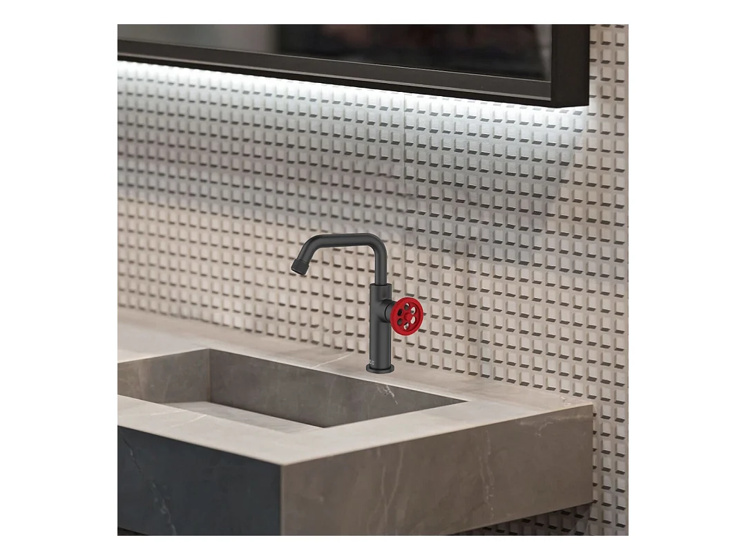 Indus niedriger Waschbeckenmischer schwarz und roter Griff Essebagno