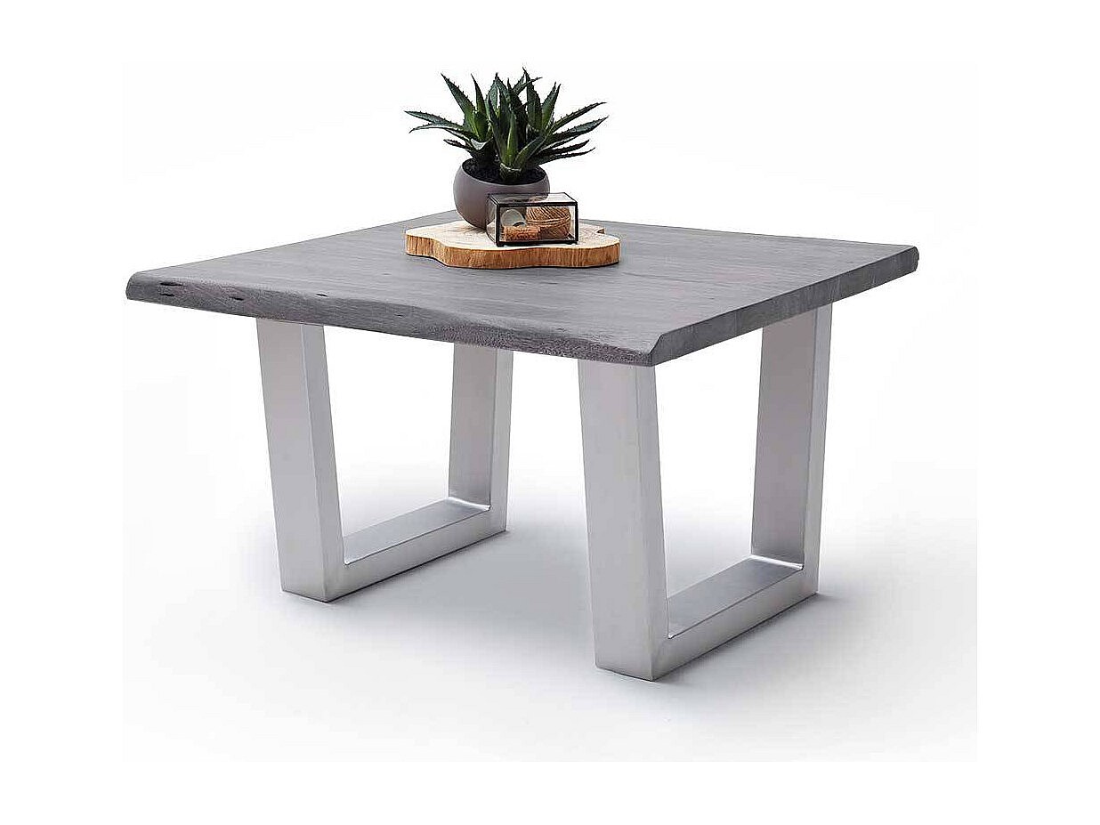 Industrial Couchtisch Akazie massiv grau Silberfarben