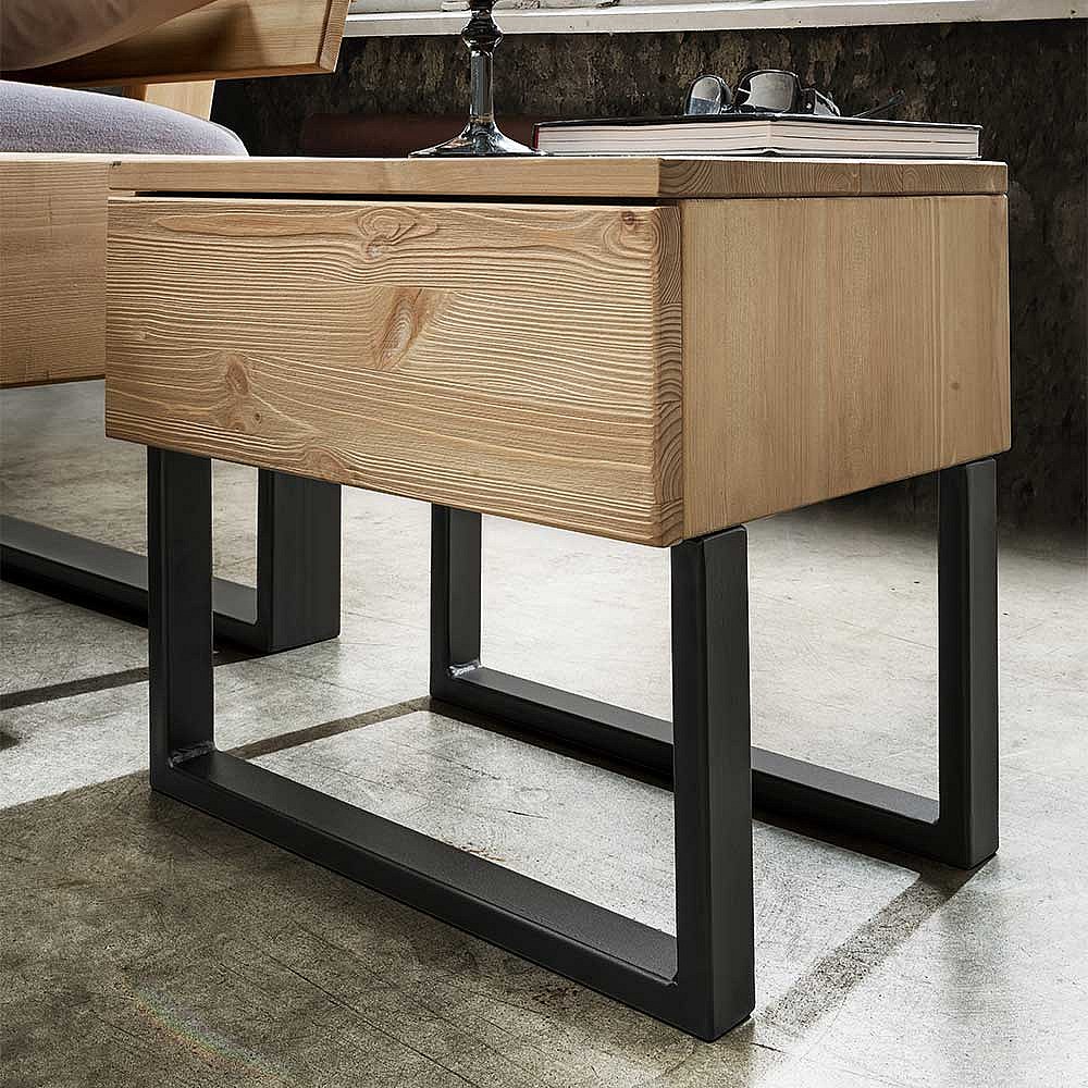 Industrial Massivholzbett aus Kiefer geölt Bügelgestell aus Metall