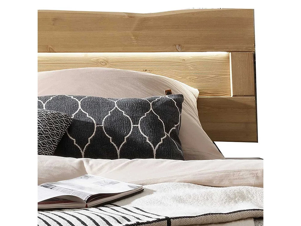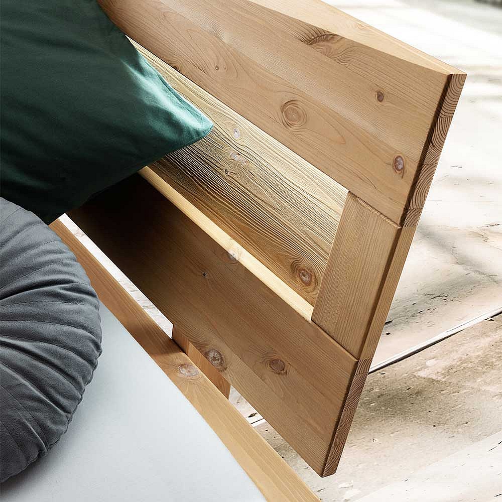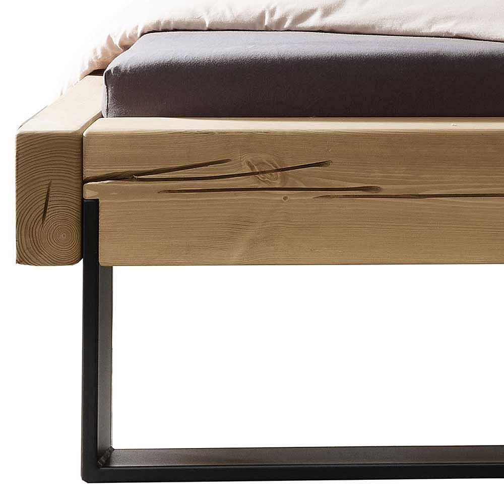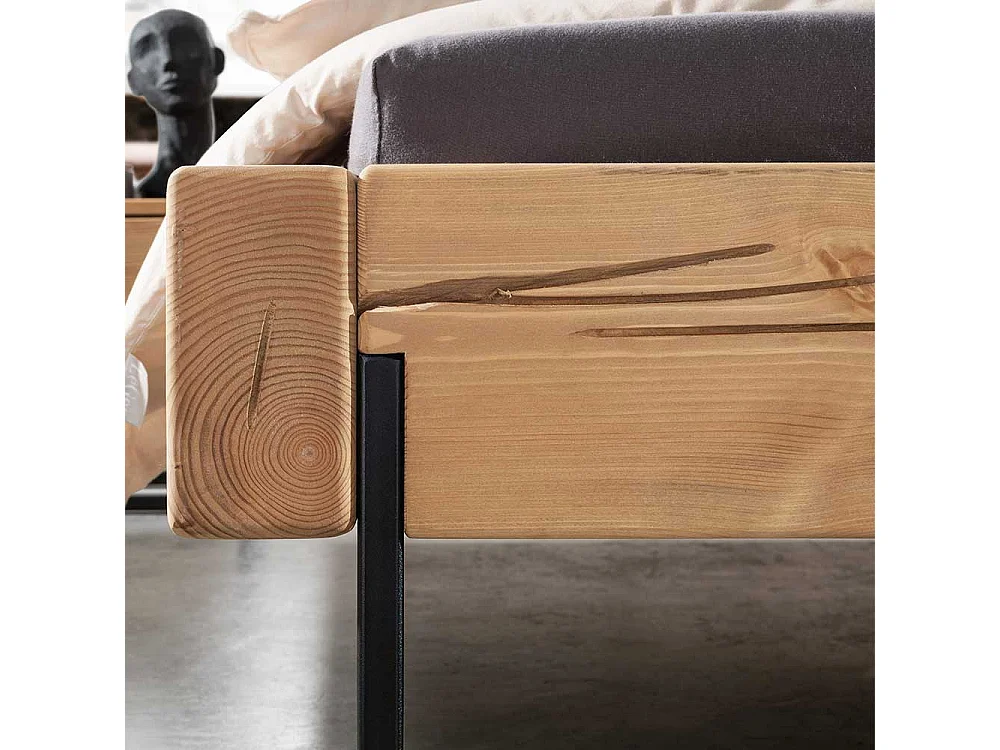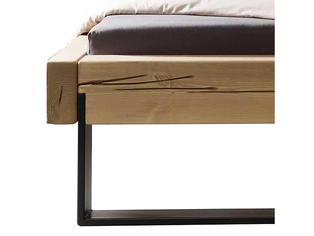Industrial Massivholzbett aus Kiefer geölt Bügelgestell aus Metall