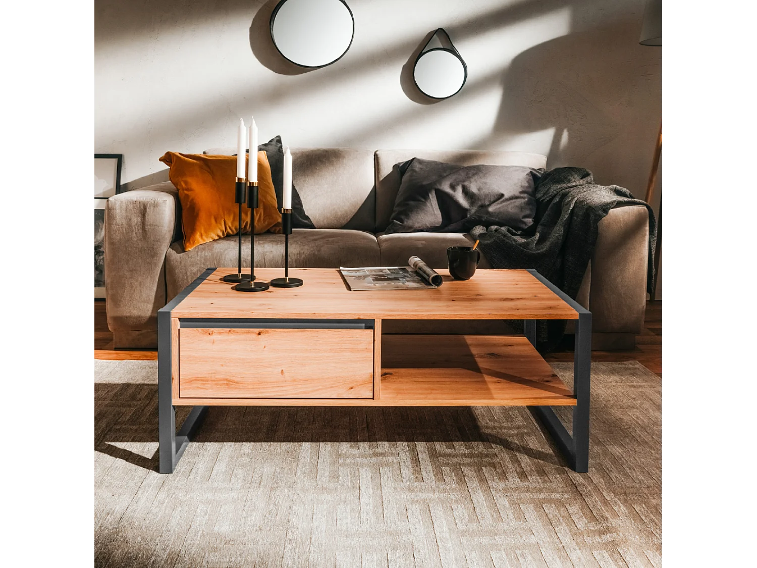 Industrieller Couchtisch mit Schublade KOTOR