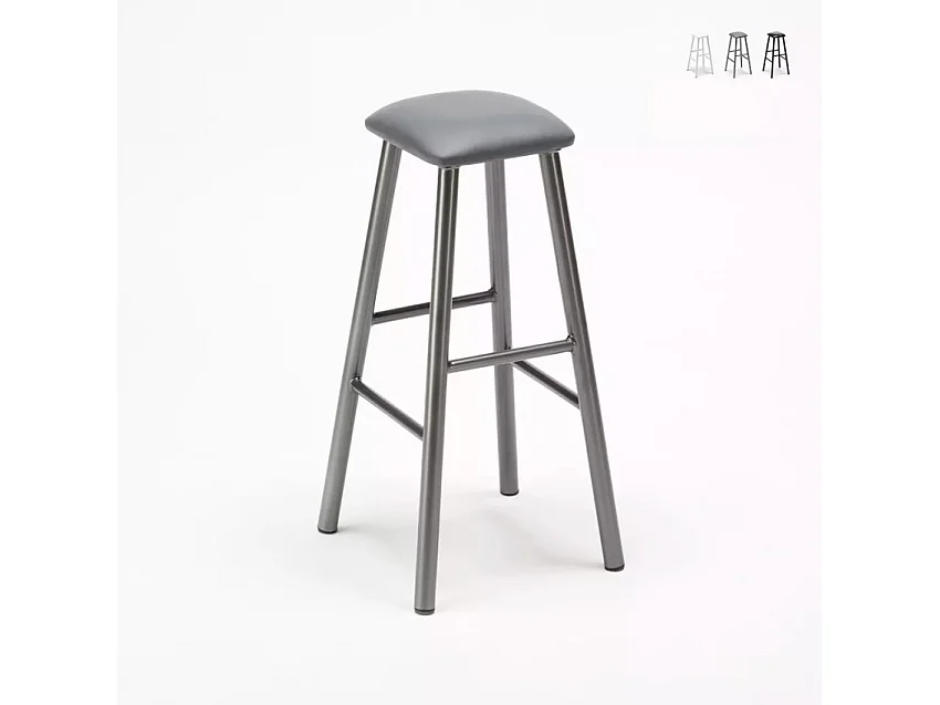 Industrieller Hocker aus Metall mit Kunstlederpolster Hardness - Grau