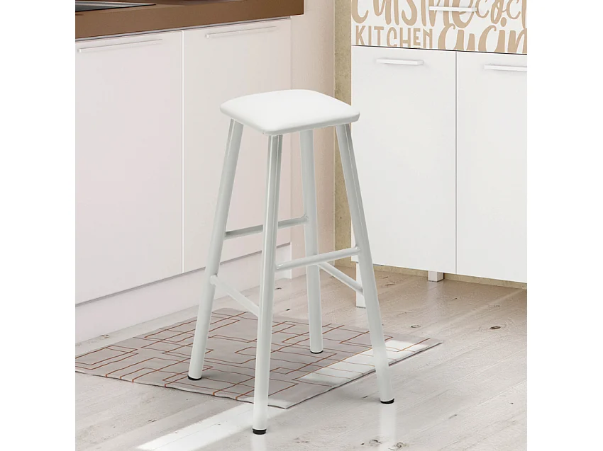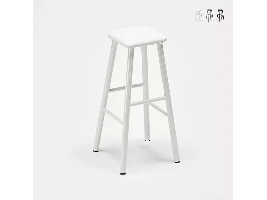 Industrieller Hocker aus Metall mit Kunstlederpolster Hardness - Weiß
