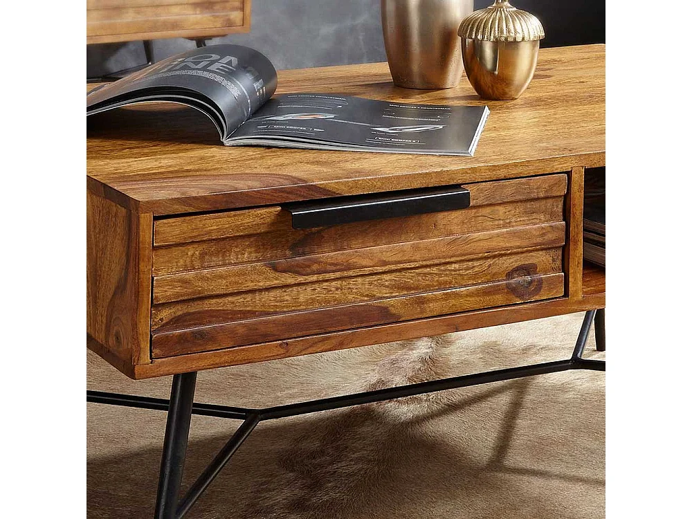 Industry Couchtisch aus Sheesham Massivholz Eisen